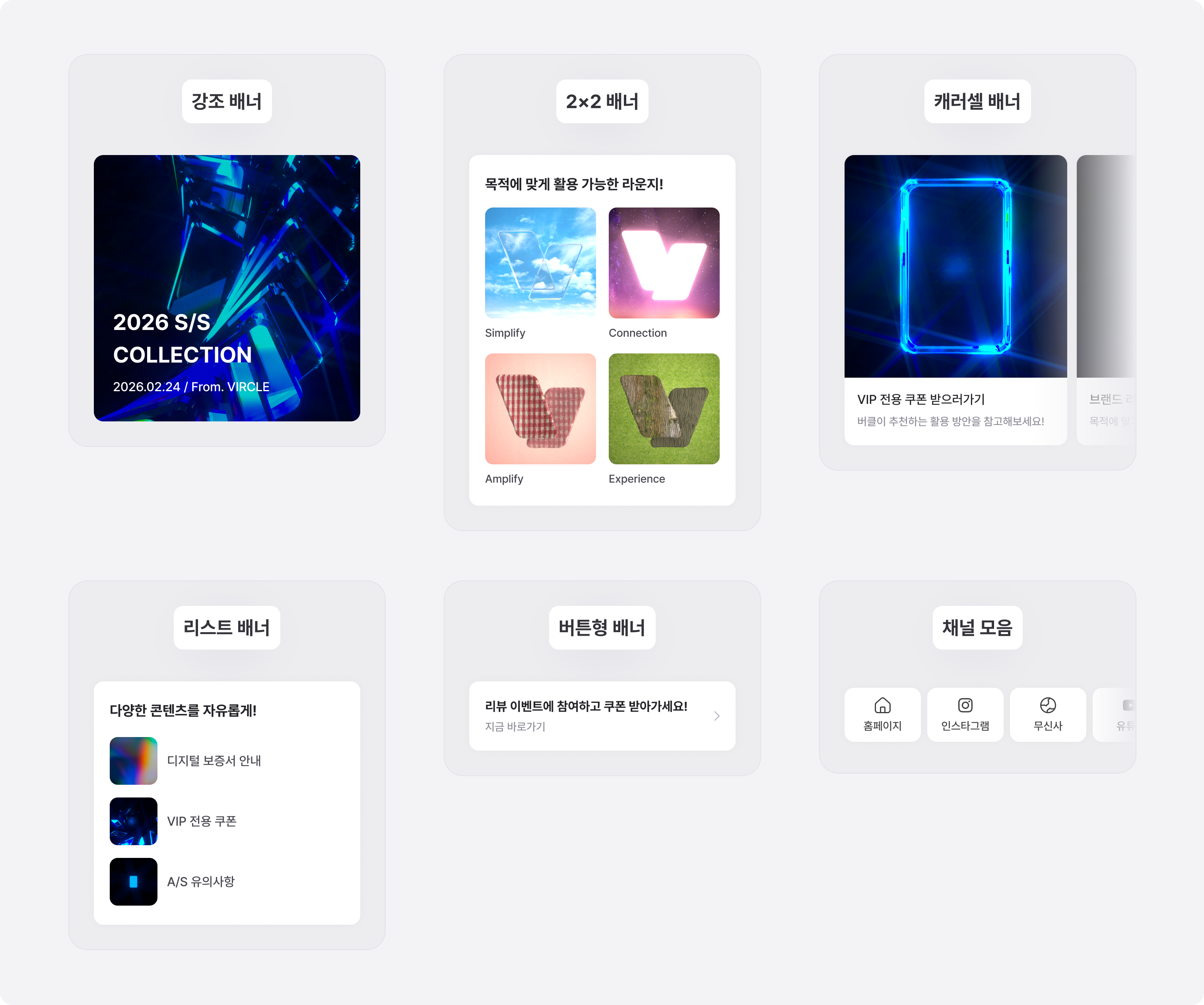 • 동일 유형 중복 생성 가능 (예: 강조 배너 3개, 리스트 배너 2개 구성 가능)