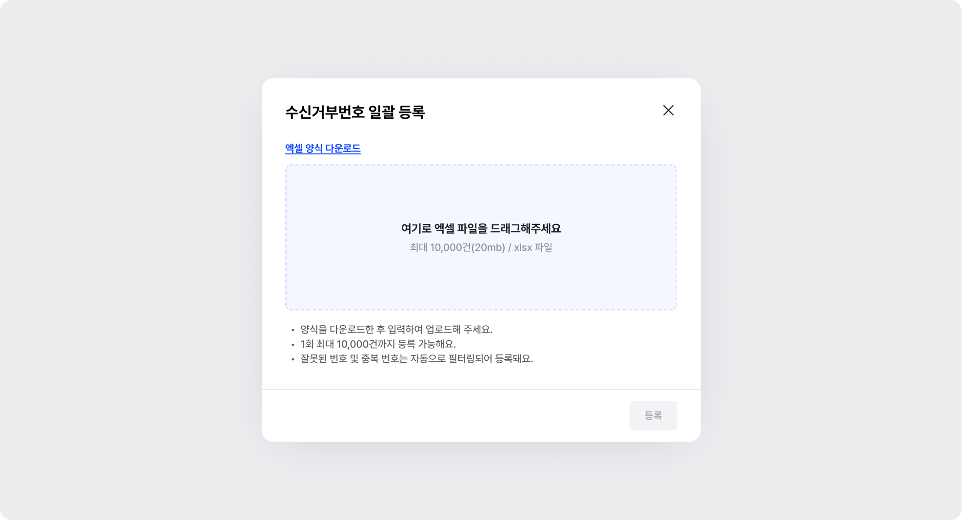 여러 번호를 한 번에 등록할 수 있는 기능이에요. (한 번에 최대 10,000건)