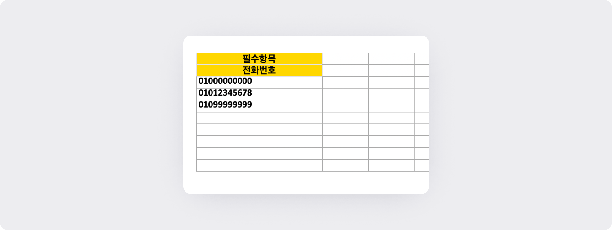 양식의 1열(전화번호)에 등록할 번호를 입력해주세요.