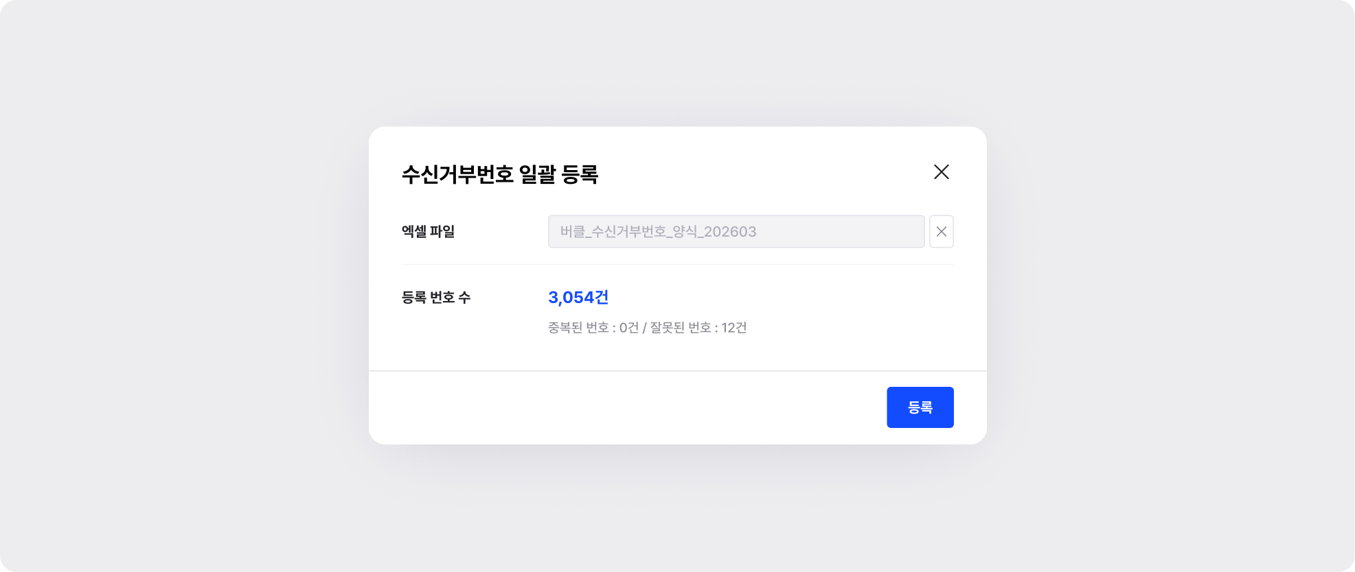 등록된 수신거부 번호 전체를 엑셀 파일로 내려받을 수 있습니다.