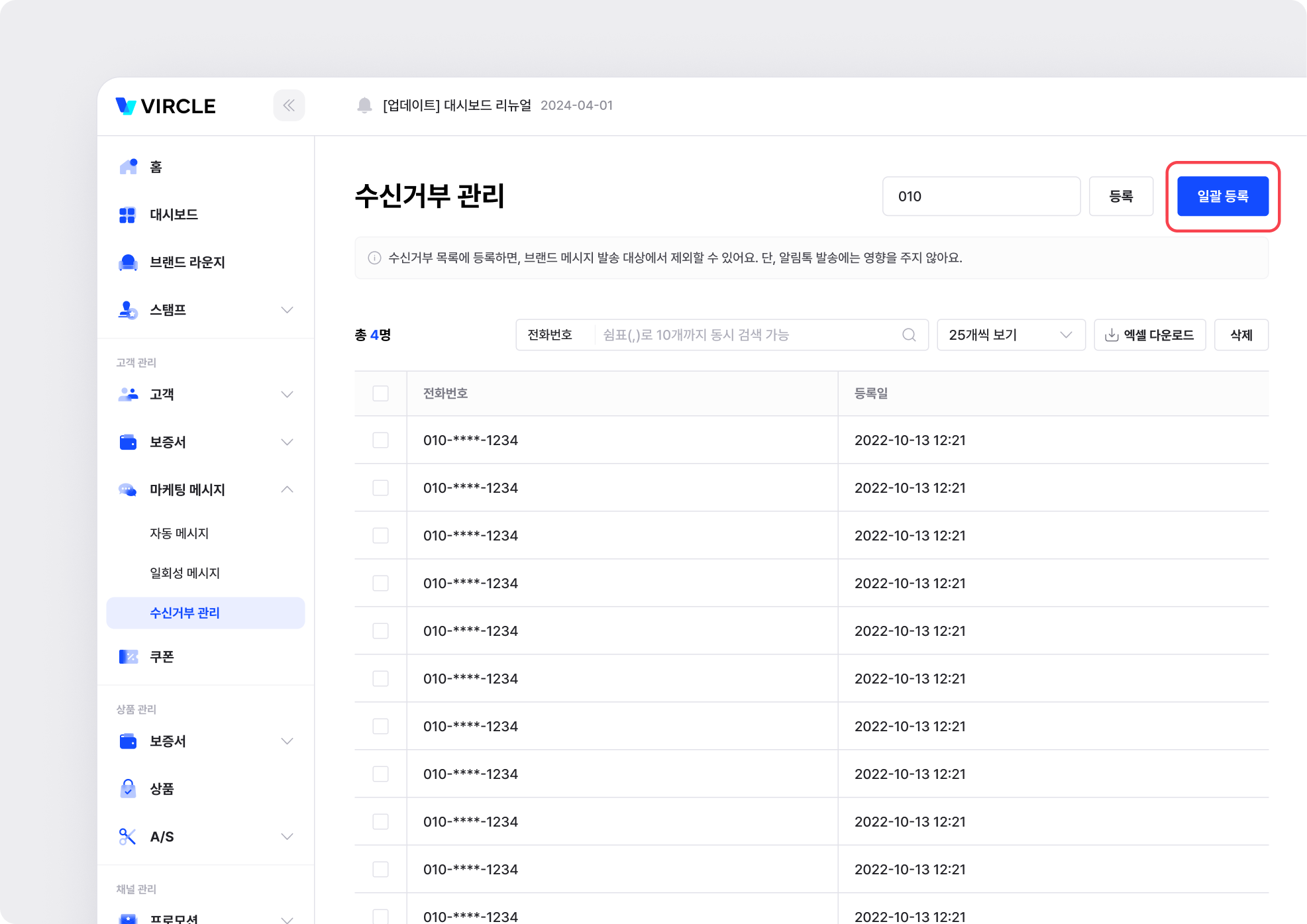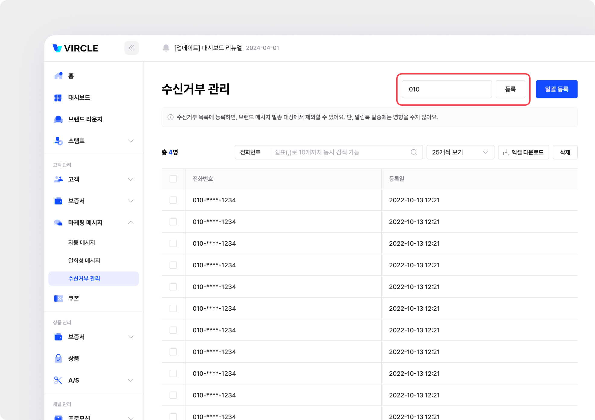 수신거부 목록에 등록하면, 브랜드 메시지 발송 대상에서 제외할 수 있어요.