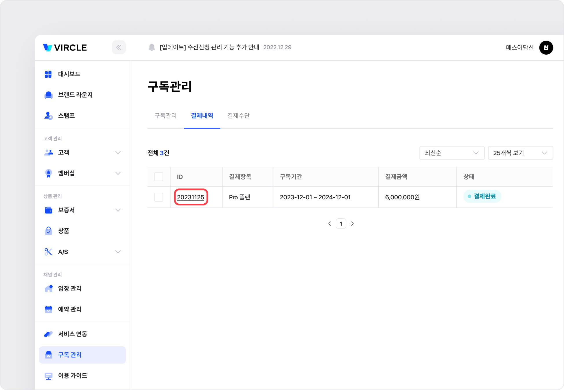 ID를 클릭하면, 결제내역 상세를 볼 수 있습니다.