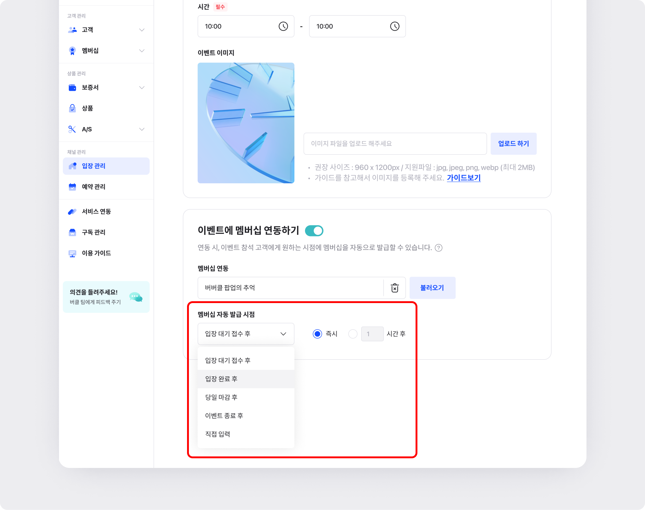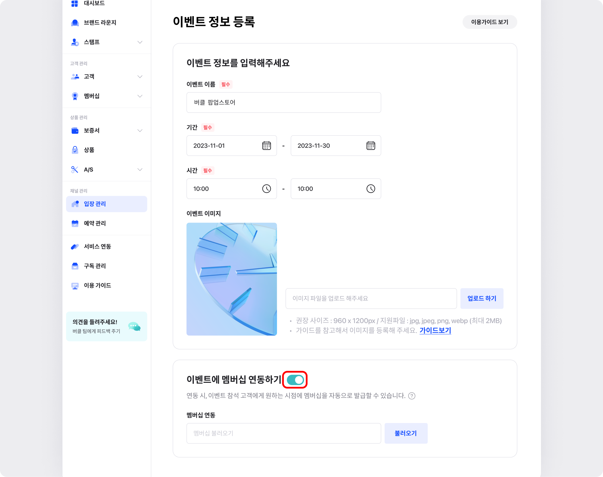 [이벤트에 멤버십 연동하기] 메뉴의