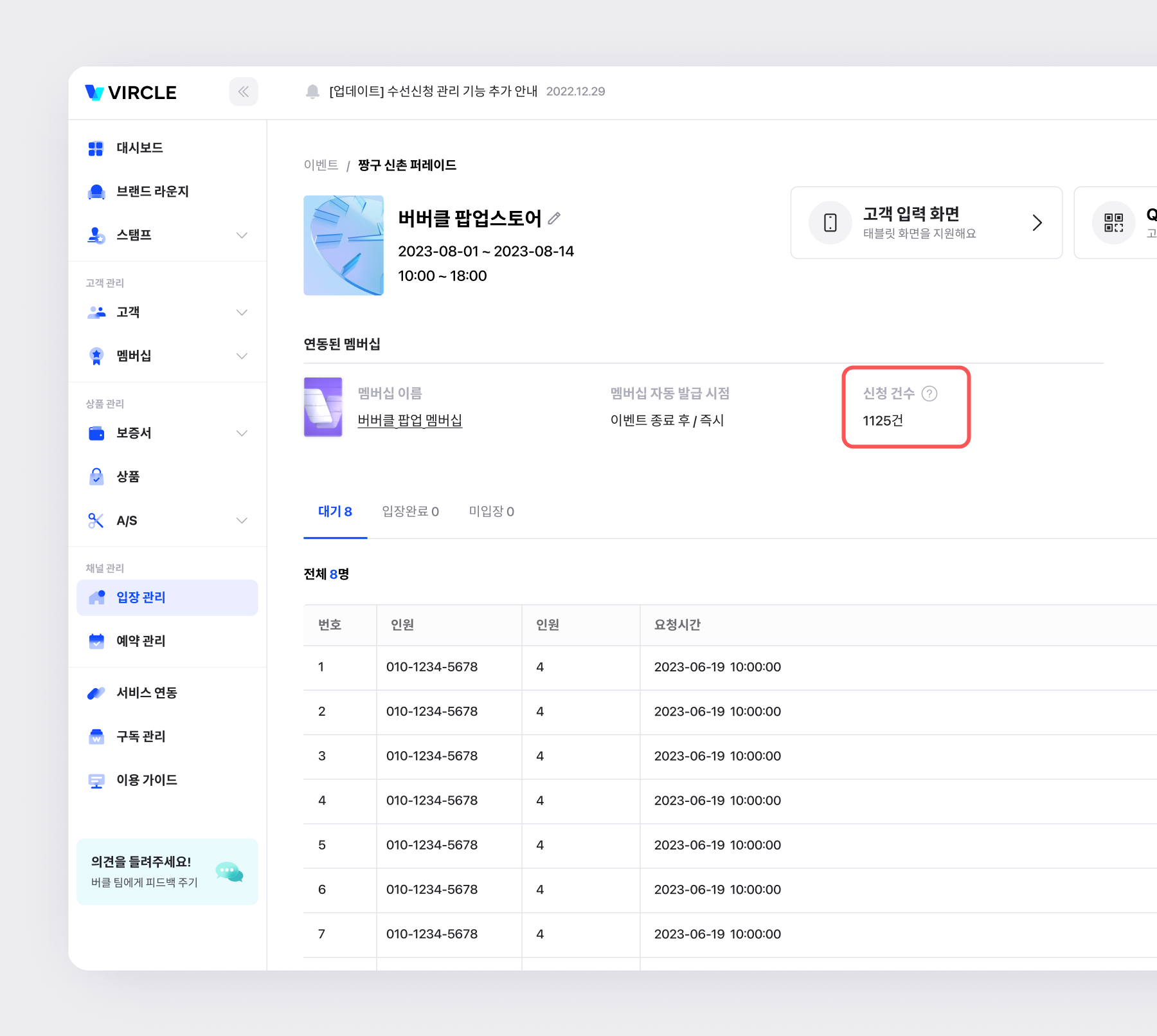 [이벤트 상세] 페이지에서 멤버십을 신청한 고객이 몇명인지 확인할 수 있어요.