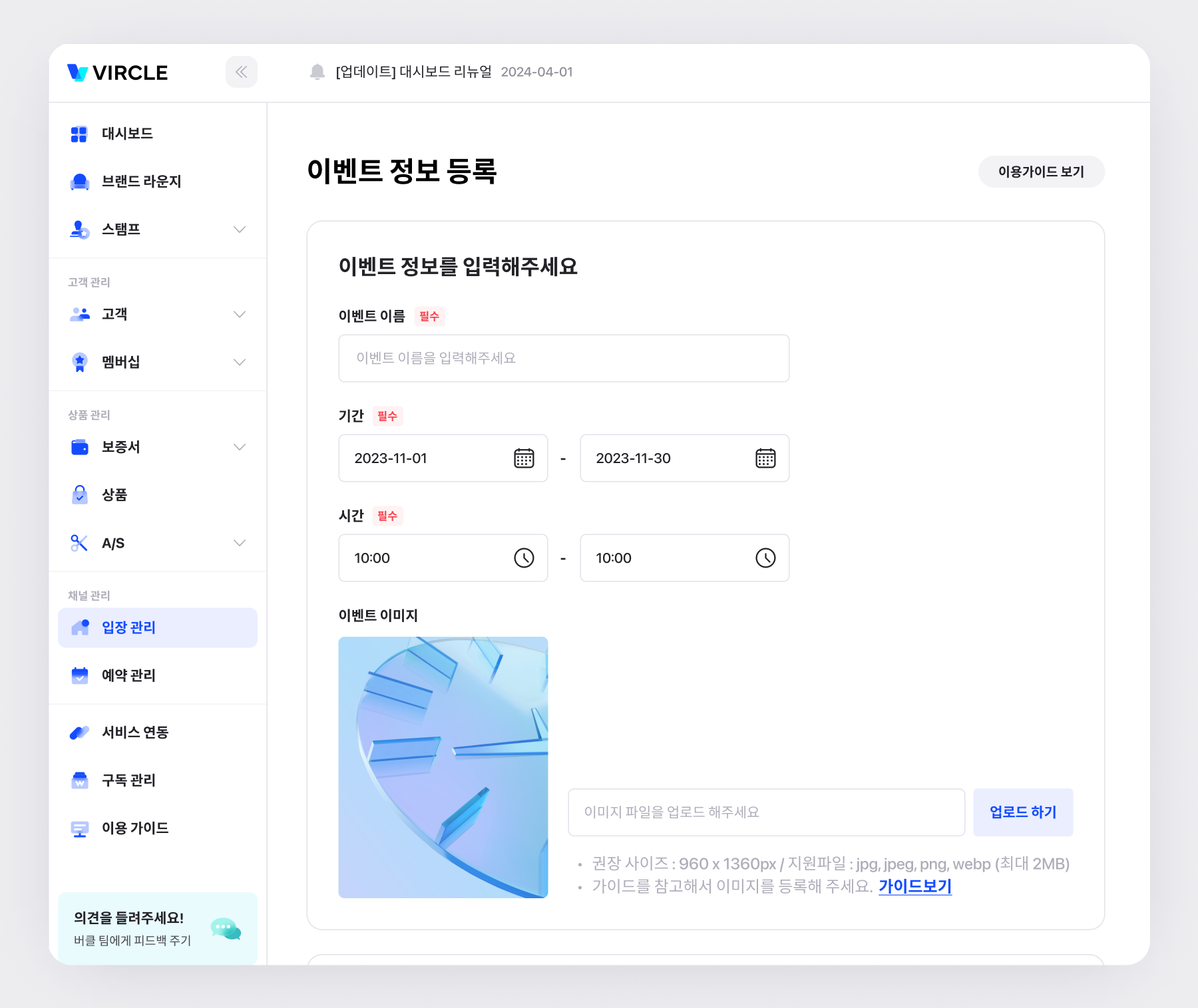 이벤트 이미지는 선택 항목입니다. 업로드하지 않으면 기본 이미지로 노출됩니다.
