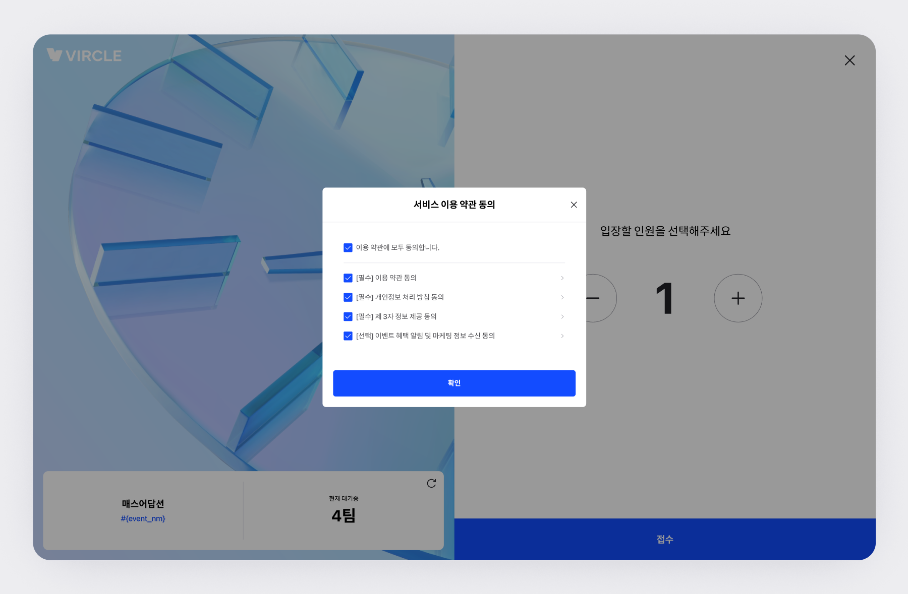 고객 입력 화면을 클릭하면실제 오프라인 매장 / 행사에서 사용될 화면을 볼 수 있습니다.