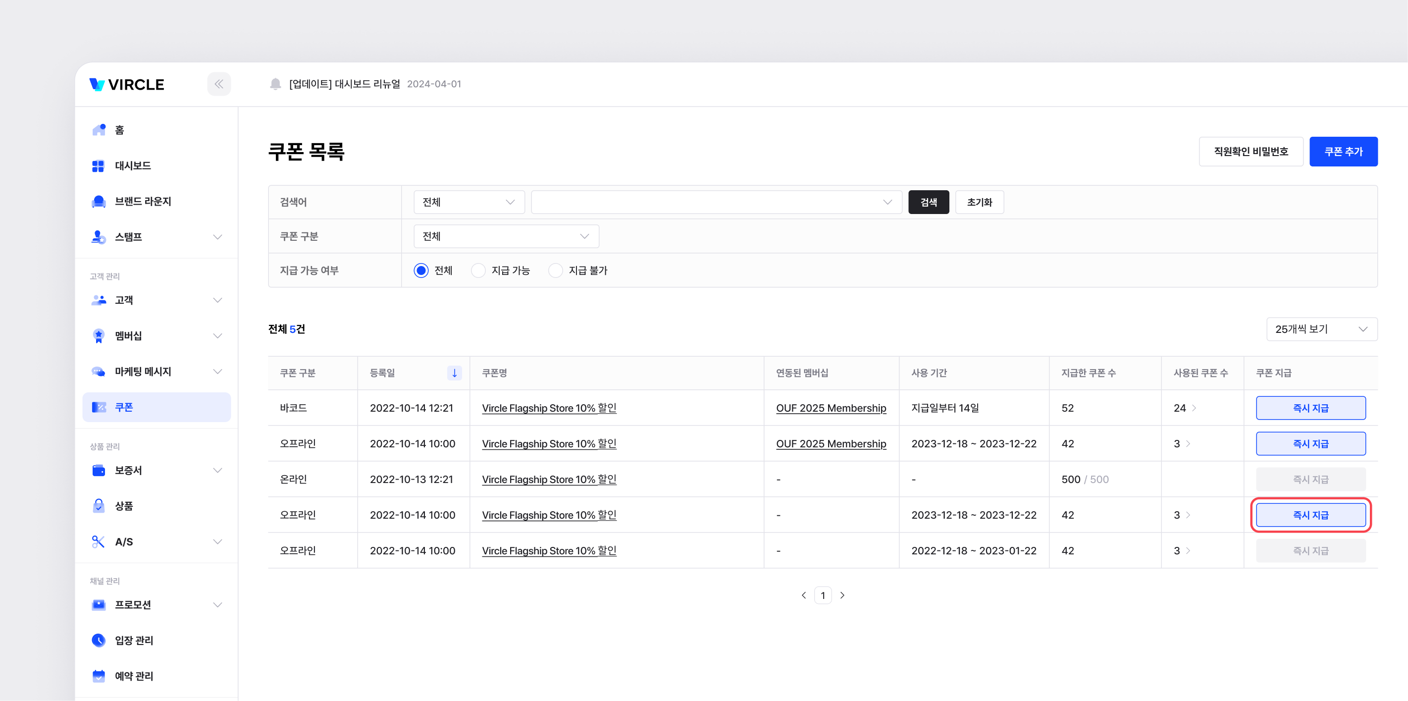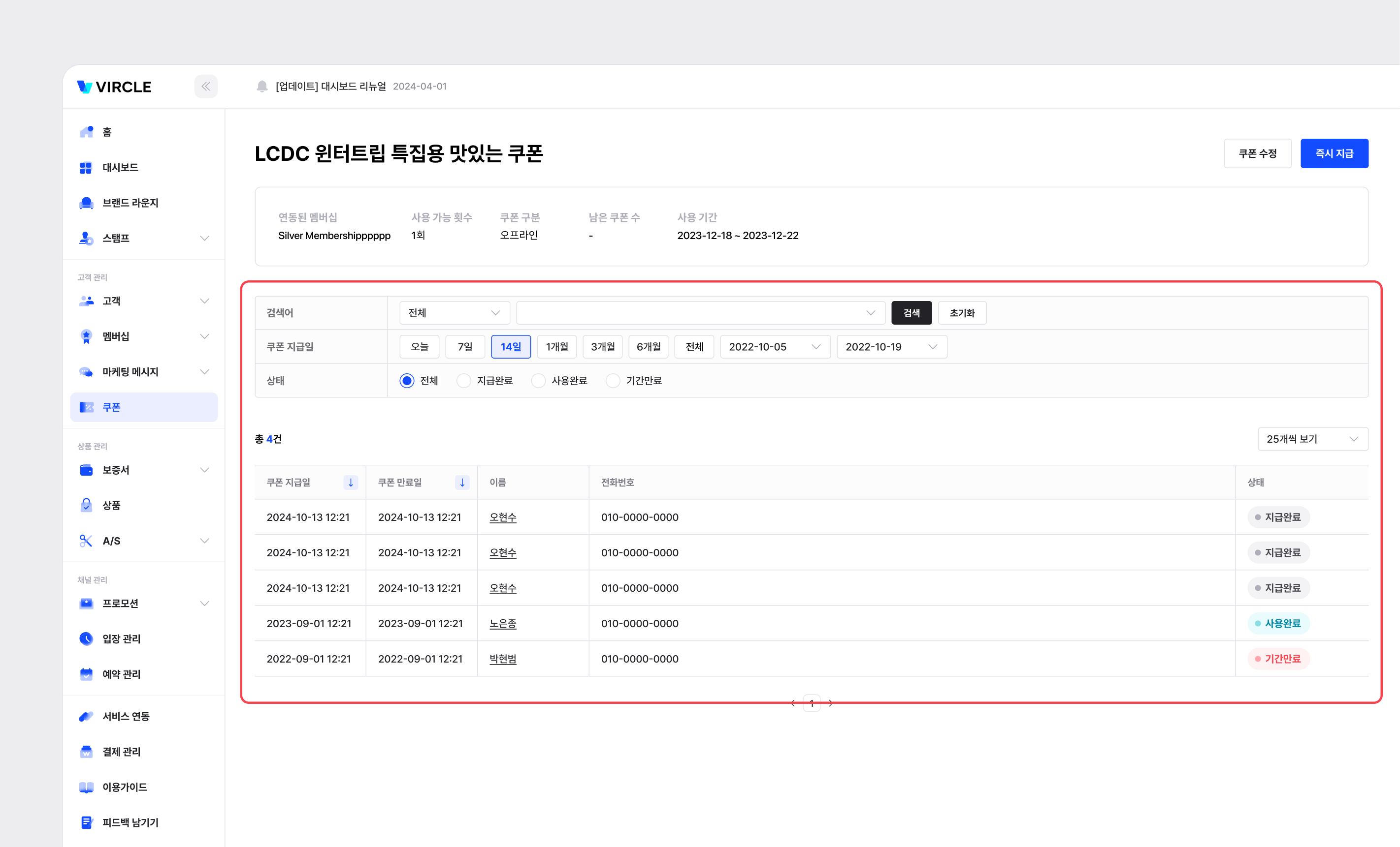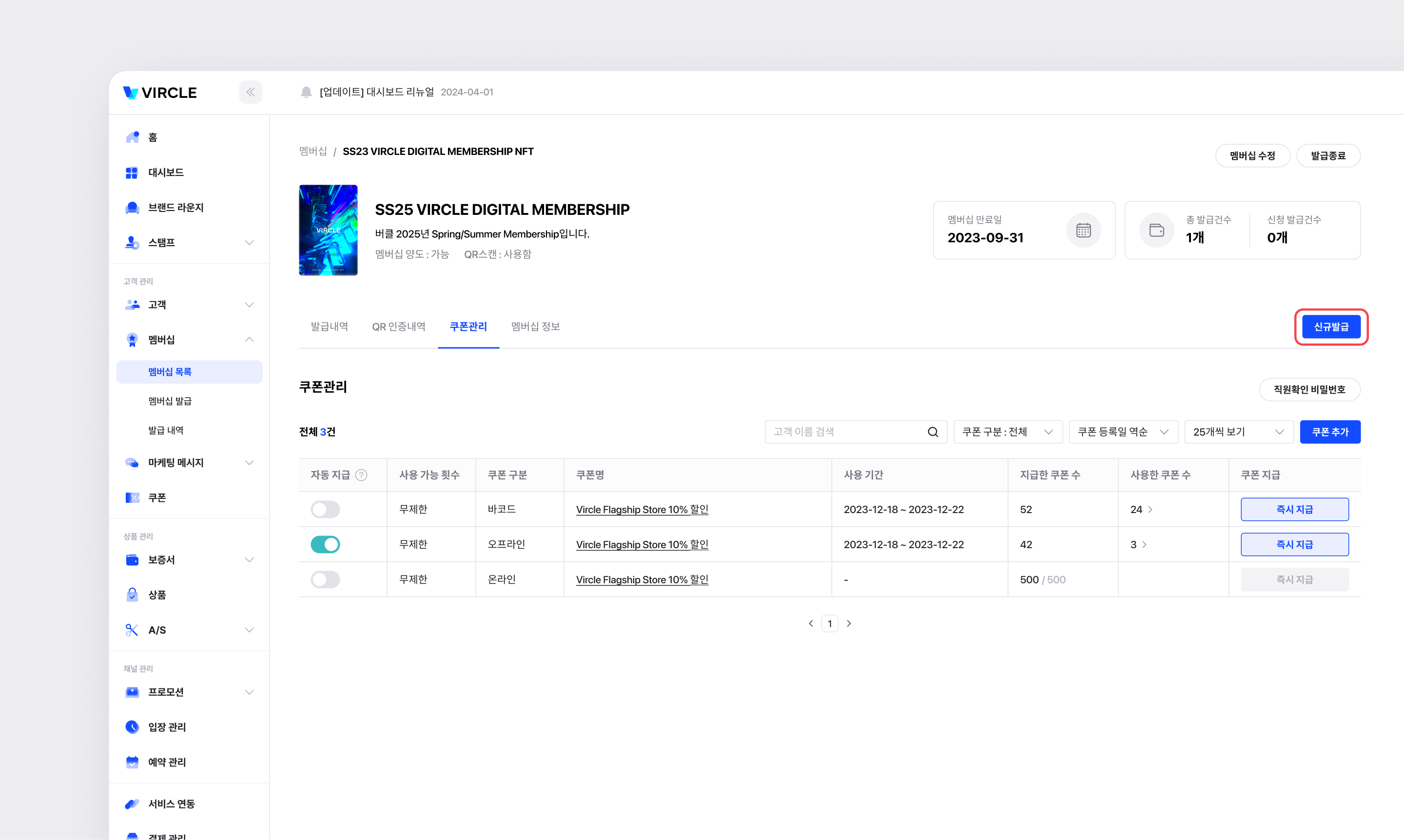 [멤버십 상세] 페이지 [쿠폰관리] 탭의