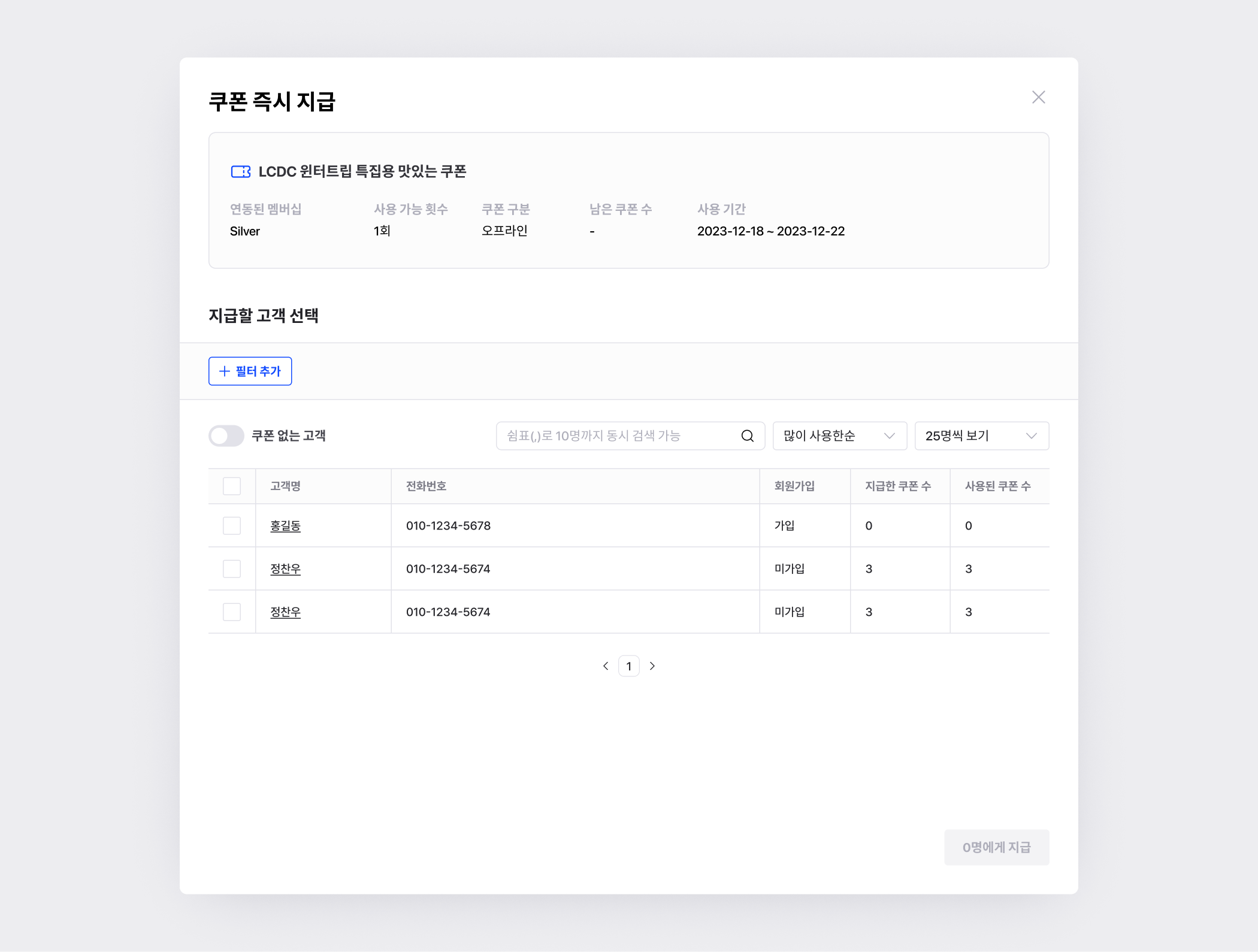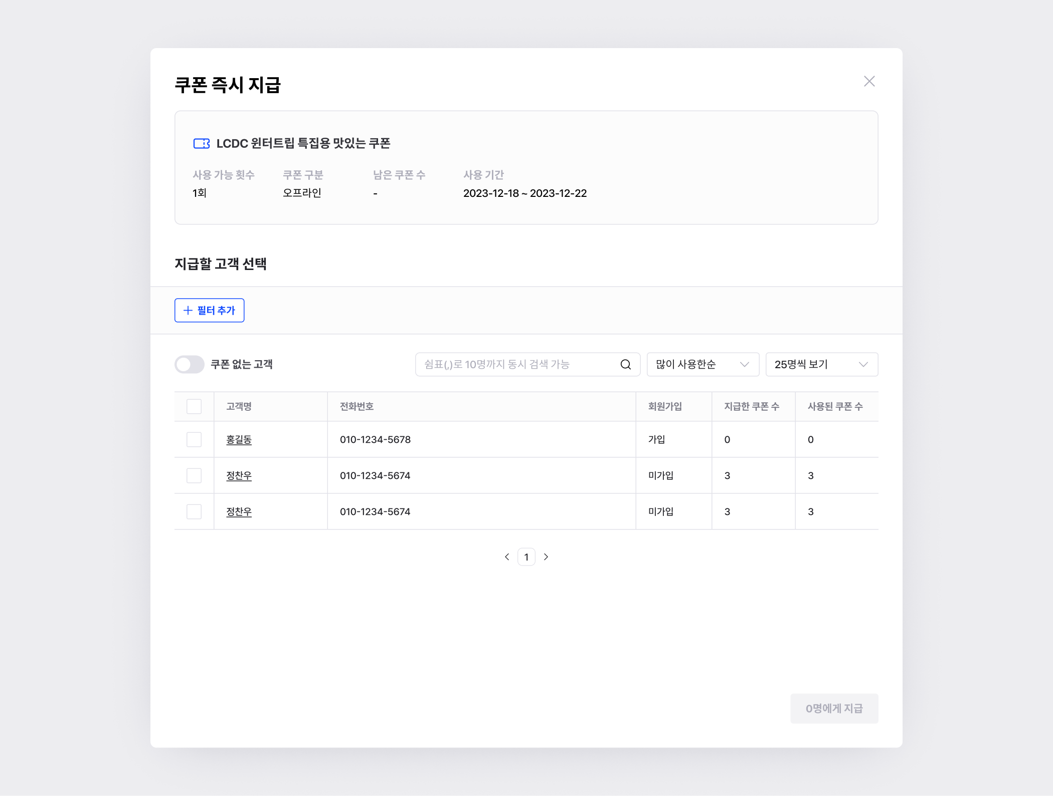 지급 완료 후, 해당 쿠폰의 [쿠폰 상세]에서 지급내역을 확인할 수 있어요.