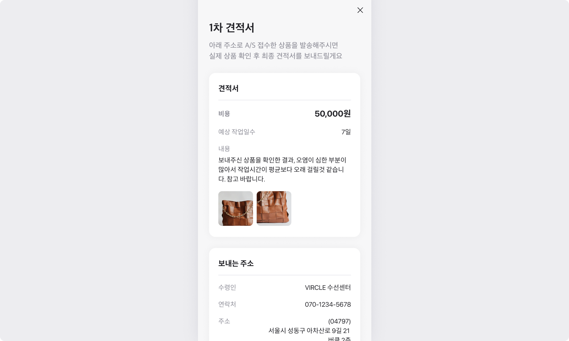 고객은 해당 견적서를 보고, A/S 센터로 상품을 발송합니다.
