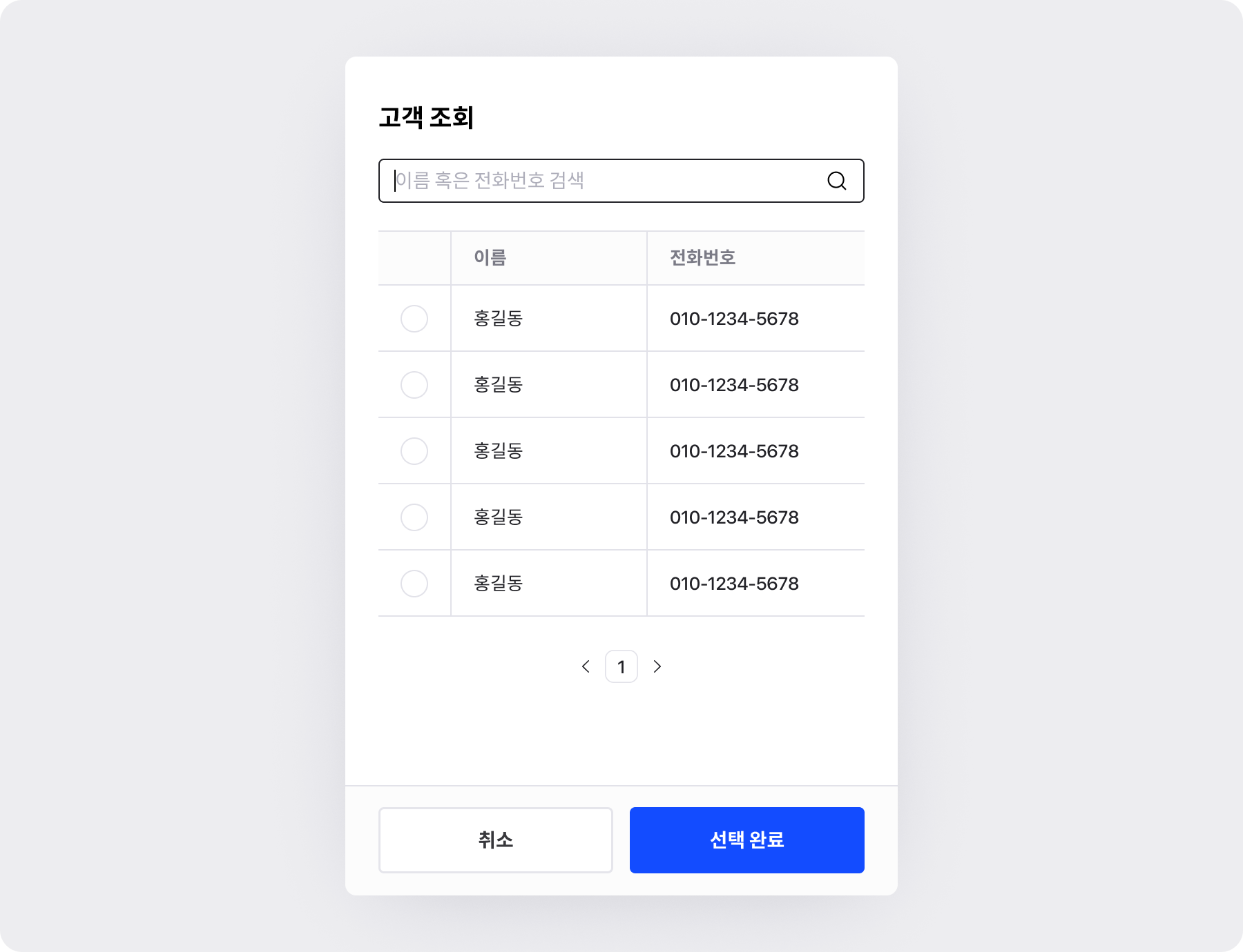 고객 조회버튼을 클릭해 접수 고객을 선택해주세요.만약, 양도 받은 보증서라면, 마지막 소유주의 이름을 선택해주시면 됩니다.