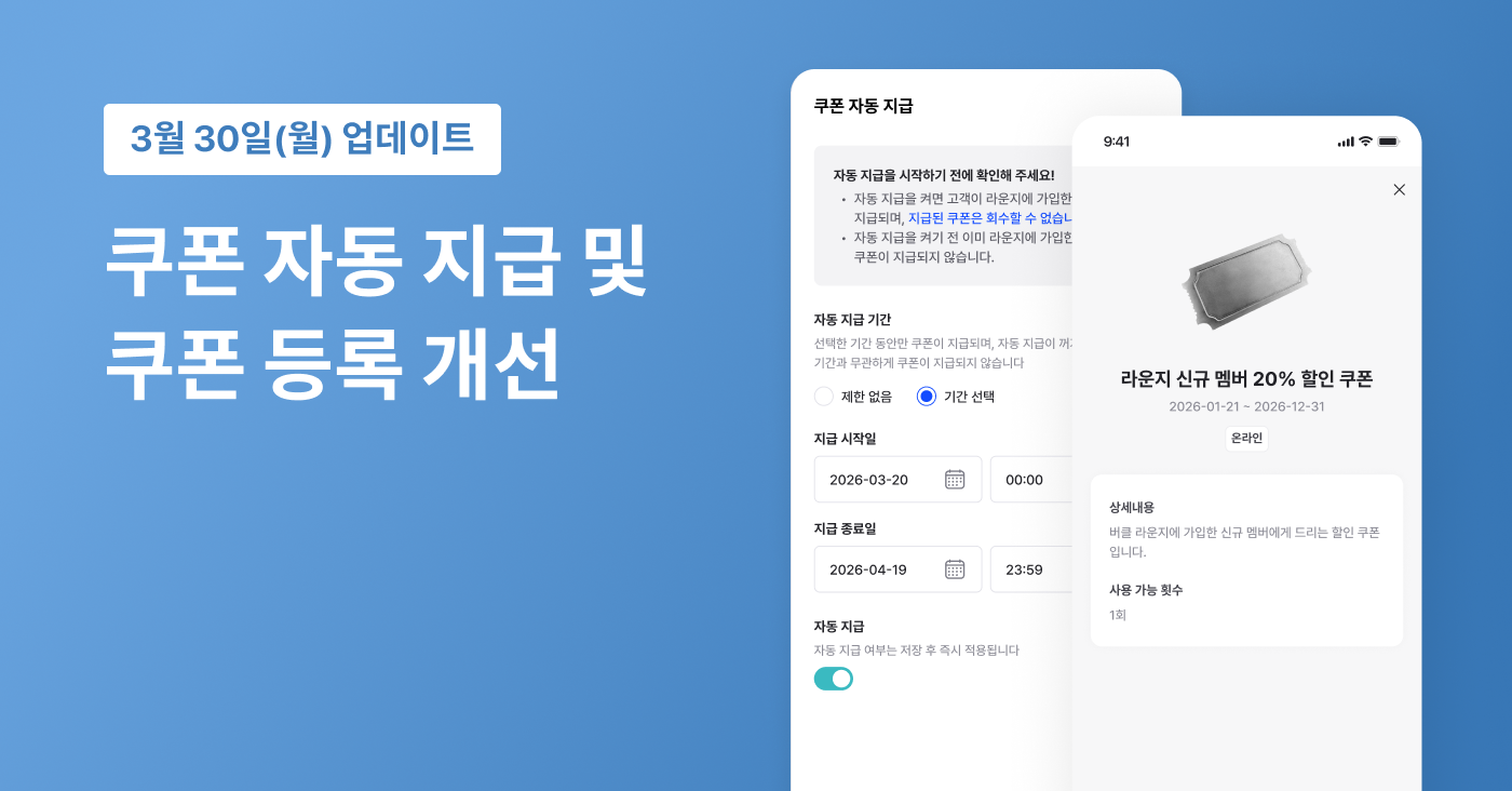 쿠폰 자동 지급 및 쿠폰 등록 개선