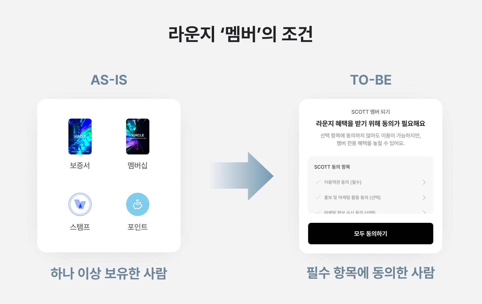 기존에는 보증서, 멤버십, 스탬프, 포인트를 가진 고객만 라운지의 '멤버'가 될 수 있었어요.