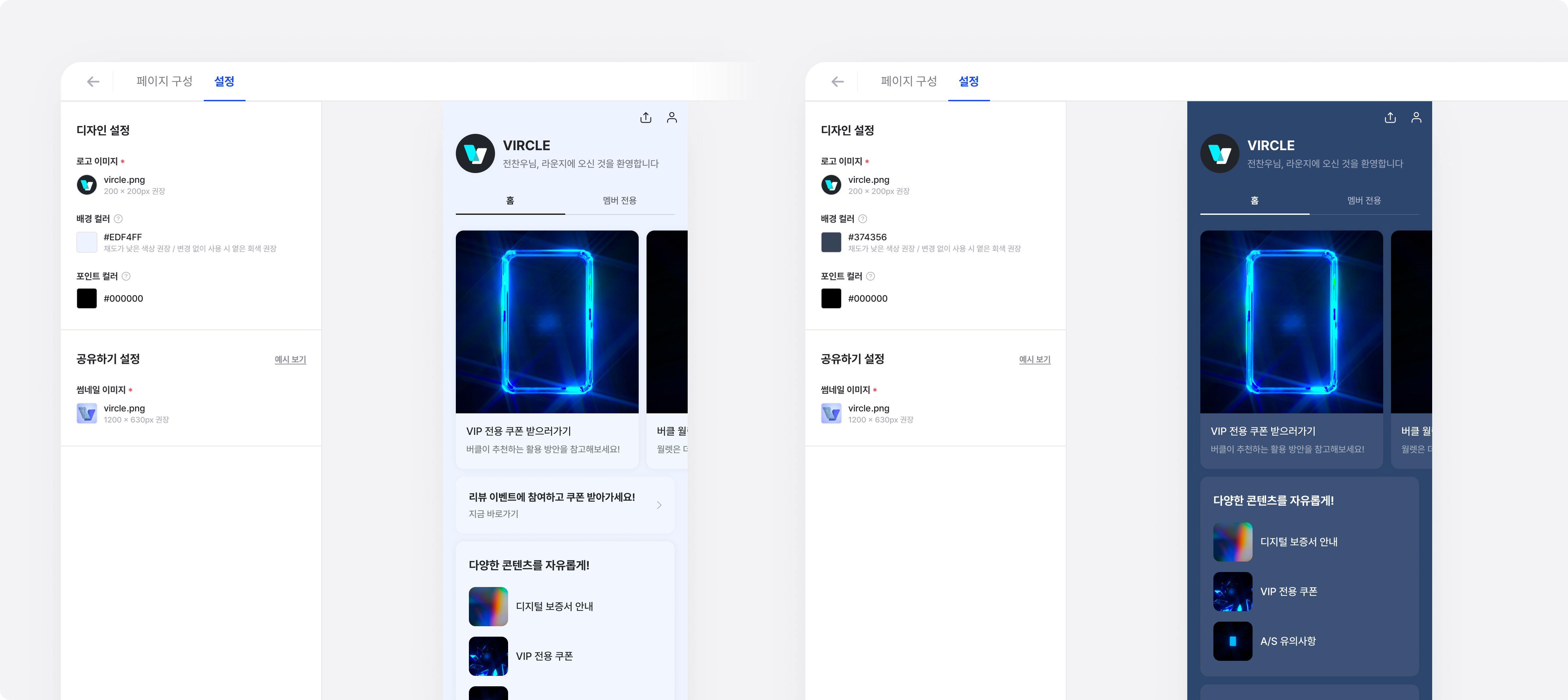 설정 탭에서 라운지의 배경 컬러를 직접 지정할 수 있습니다.