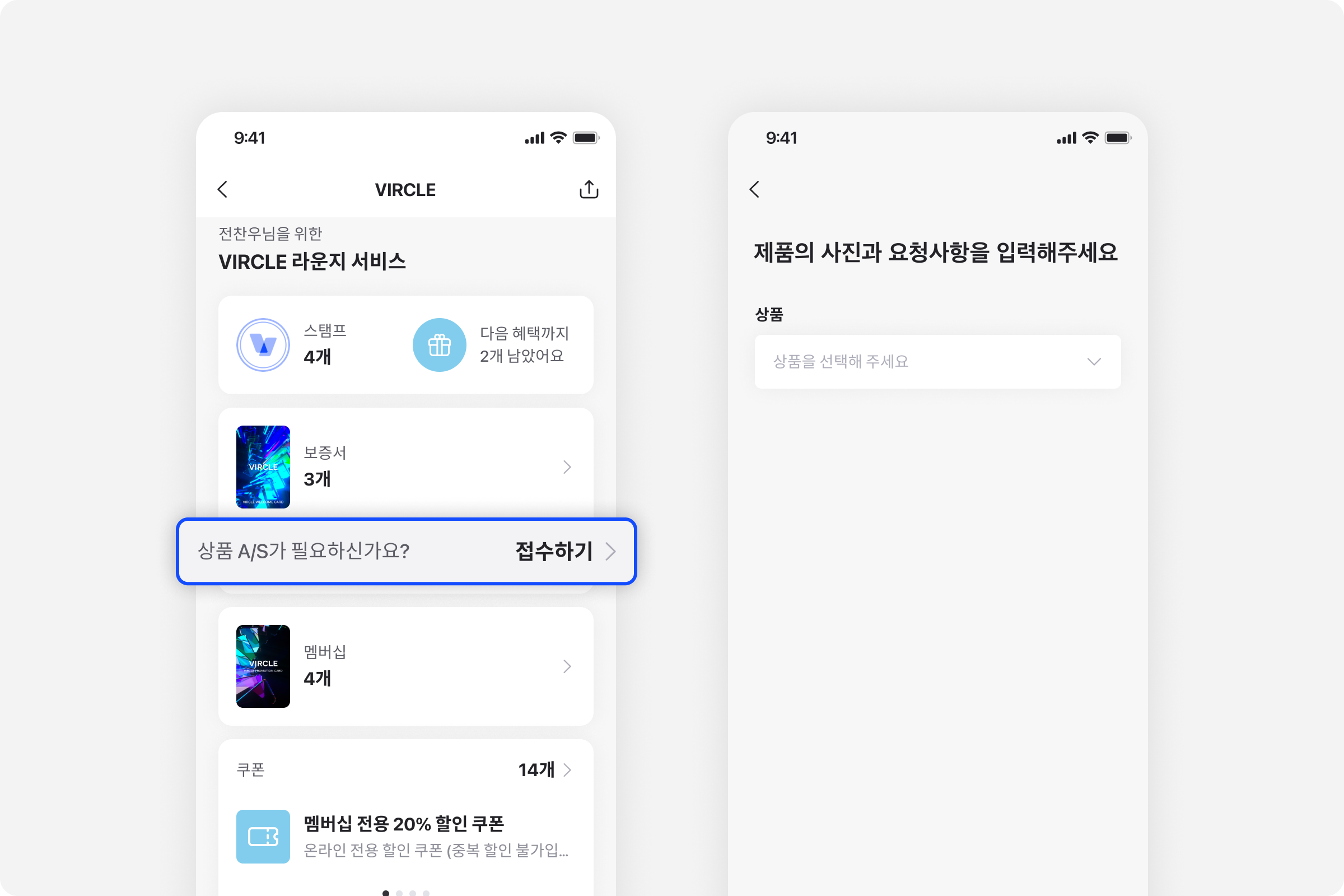 브랜드 라운지에서 바로 AS 접수가 가능하도록 메뉴가 추가되었습니다.