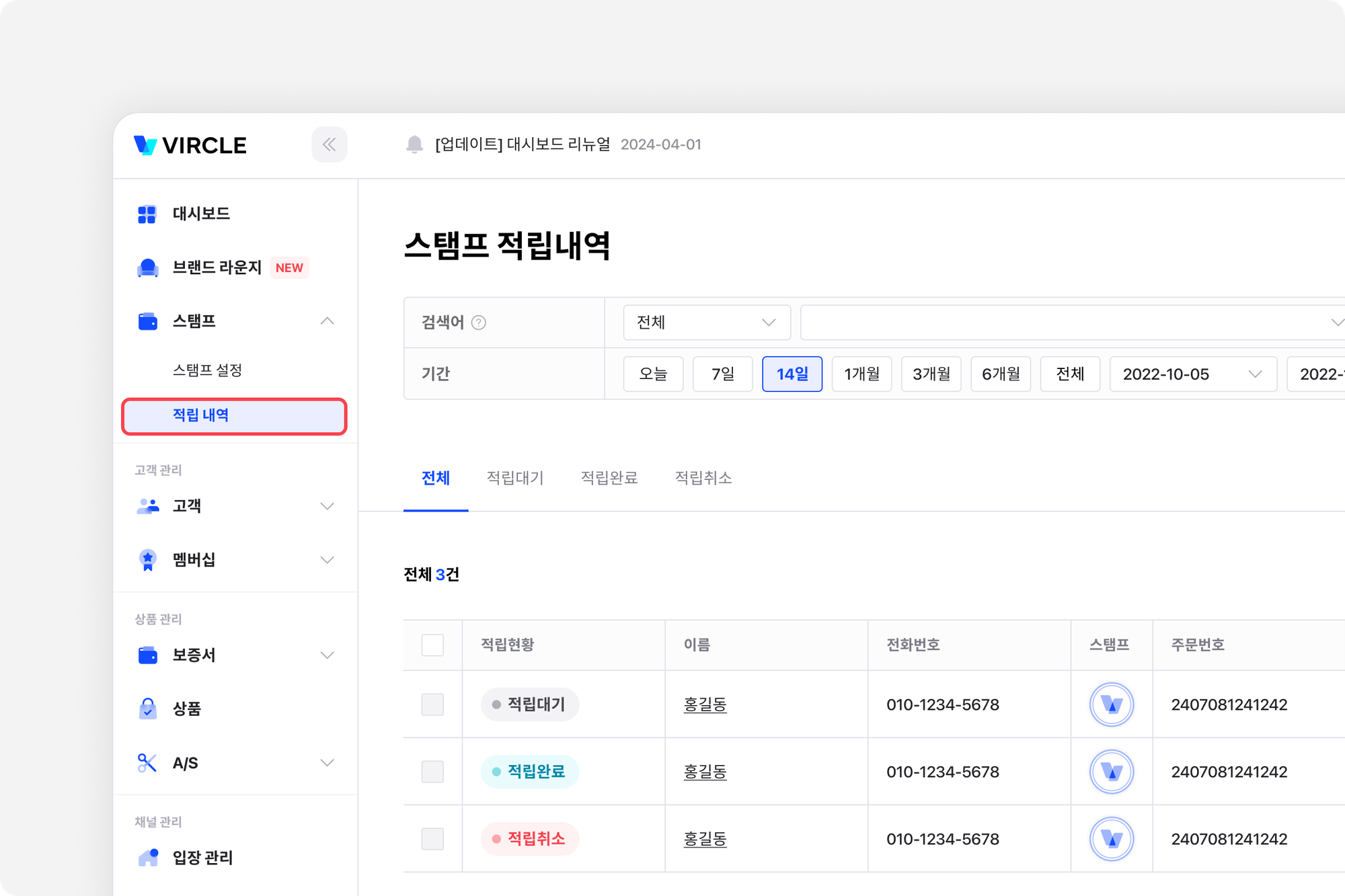 보증서를 사용할 경우, 카페24와 네이버 스마트스토어를 연동한 주문내역만 스탬프가 적립되도록 변경됐습니다.