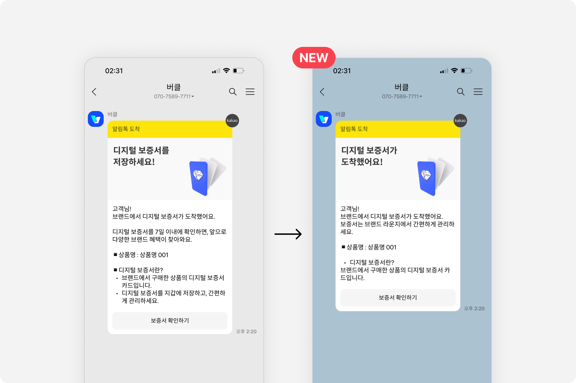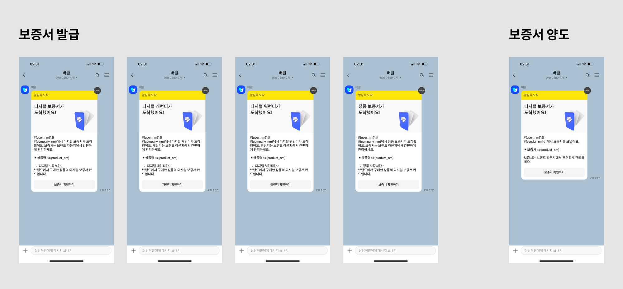 보증서 발급 알림톡 4종 템플릿 문구가 업데이트됐습니다.