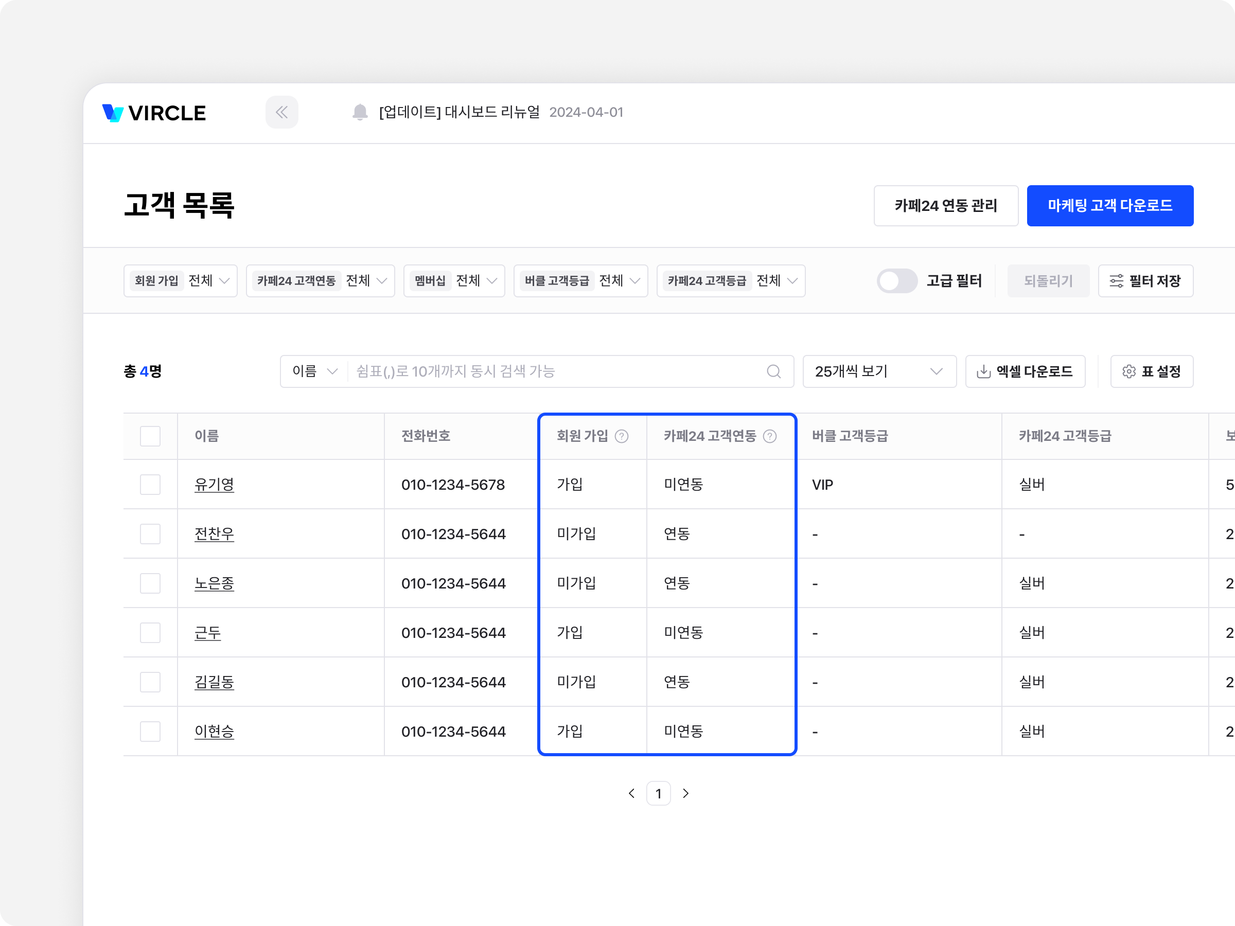 [카페24 고객연동] 열이 추가되었어요! 이제 카페24 고객연동된 고객을 구분할 수 있어요