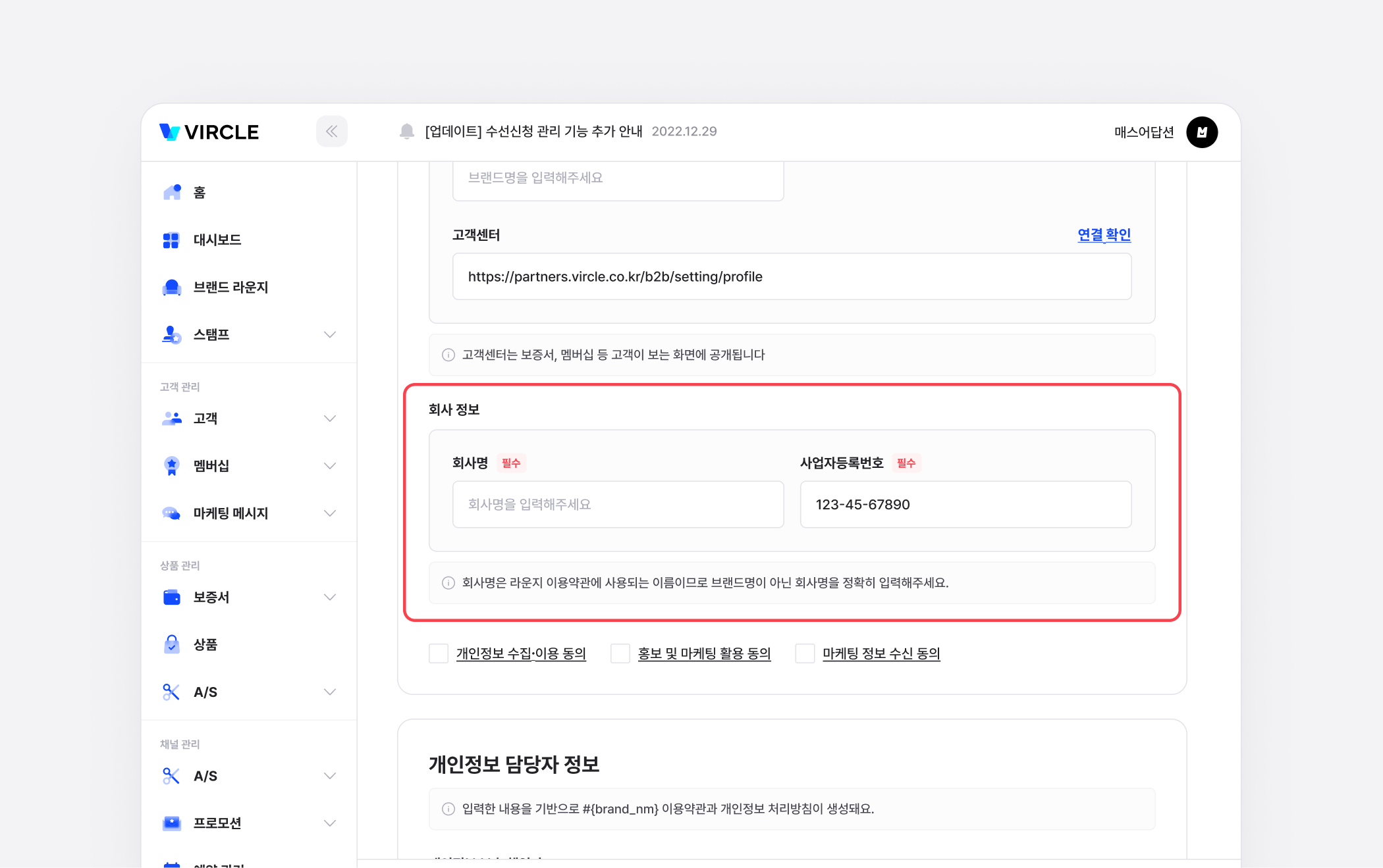 라운지 가입 기능 도입과 함께, 고객 정보 보호와 브랜드의 책임을 명확히 하기 위해