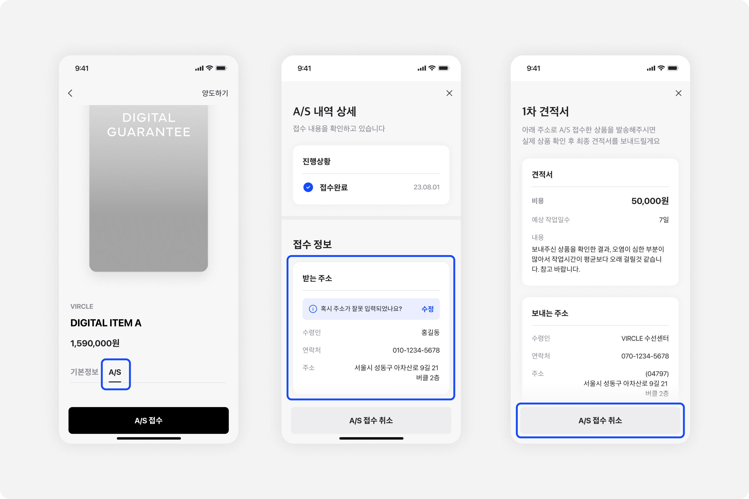 A/S 내역에 들어왔을 때 받는 주소가 스크롤 없이 보이도록 순서를 변경했어요.