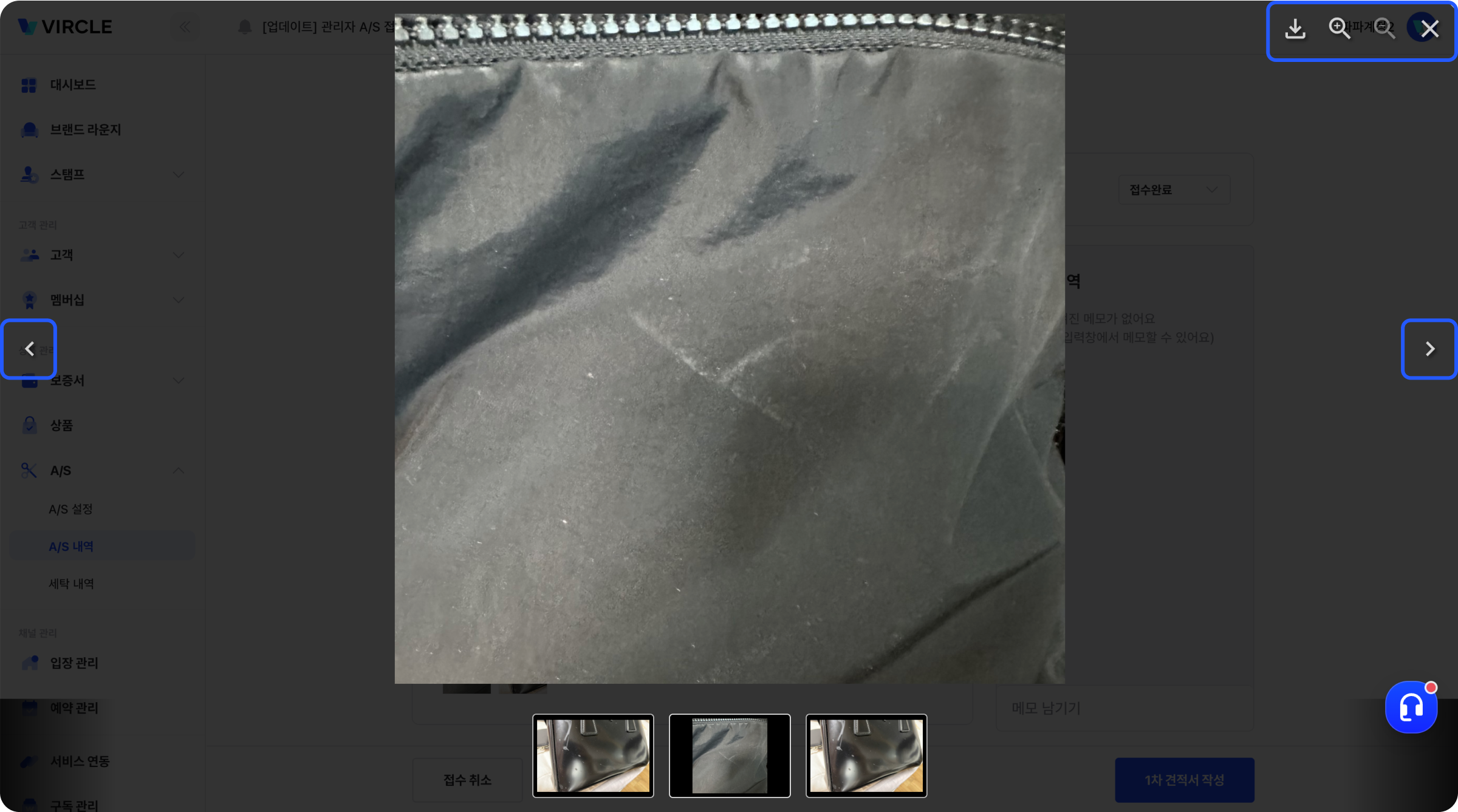 A/S 접수, 구매인증 과정에서 고객님이 첨부한 사진을 확인하기 편하도록 개선되었어요.