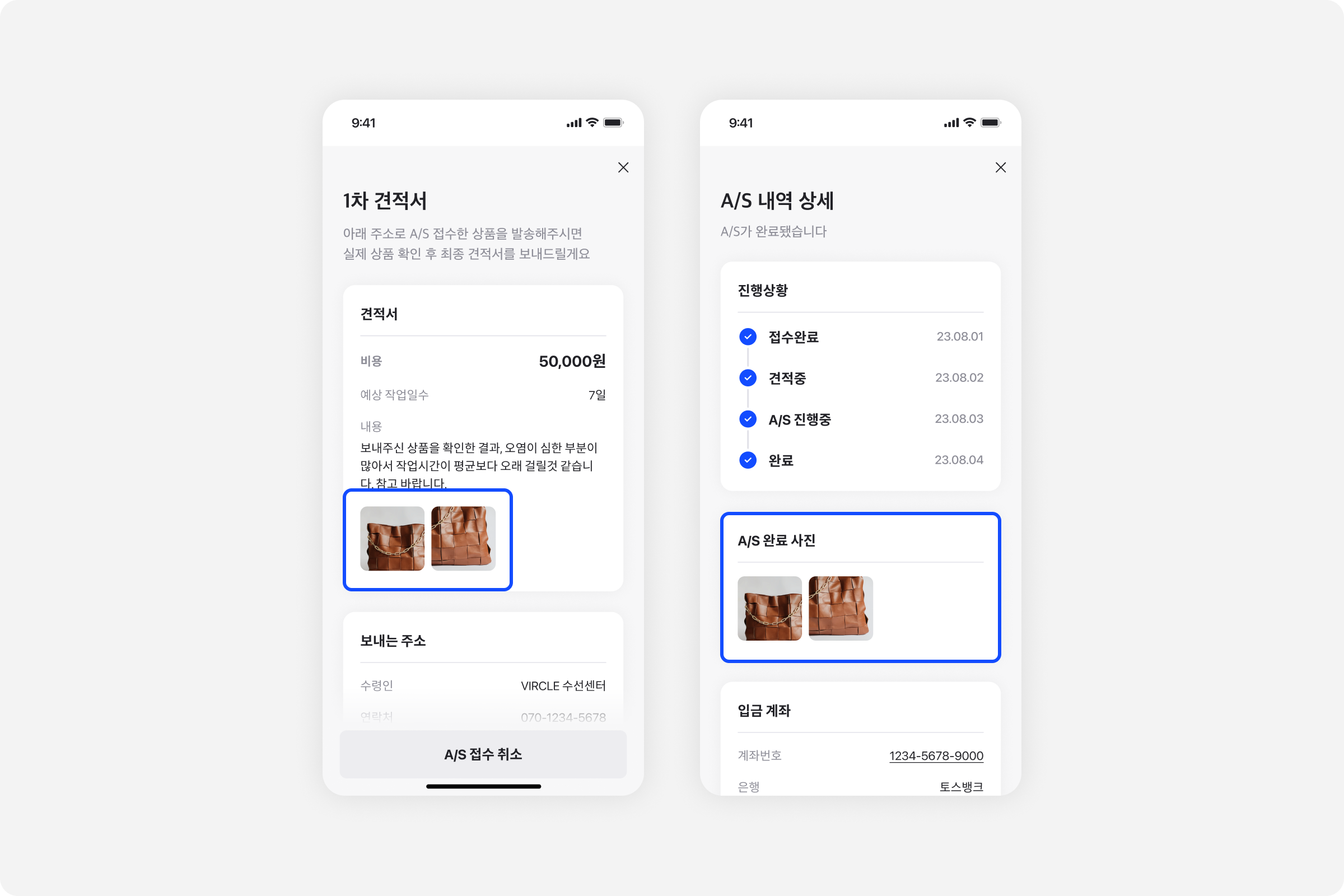 [A/S 완료] 버튼을 누르면 사진을 첨부할 수 있어요!