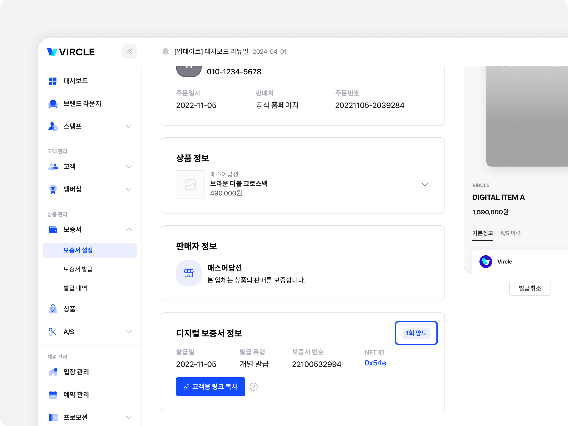 이번 업데이트에서는 A/S와 보증서 구매인증에 기능이 개선되었어요!