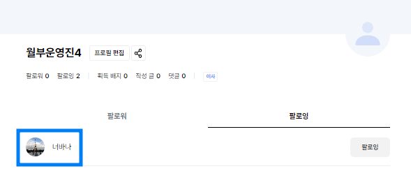 - 팔로잉: 내가 팔로우하는 사람들 목록이에요.