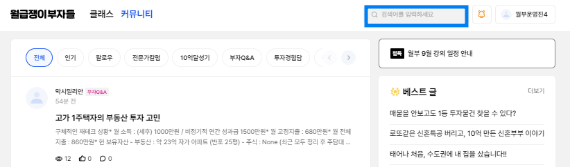2) 월부닷컴 검색창에 원하는 사람의 이름을 검색 > 결과창에서 원하는 글을 클릭해 확인