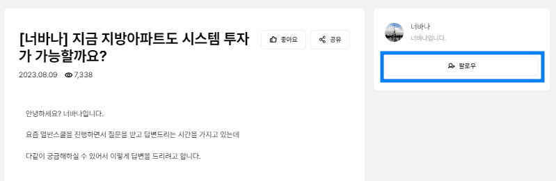 2) 팔로우하고 싶은 사람이 있다면 팔로우 버튼을 누르시면 됩니다.