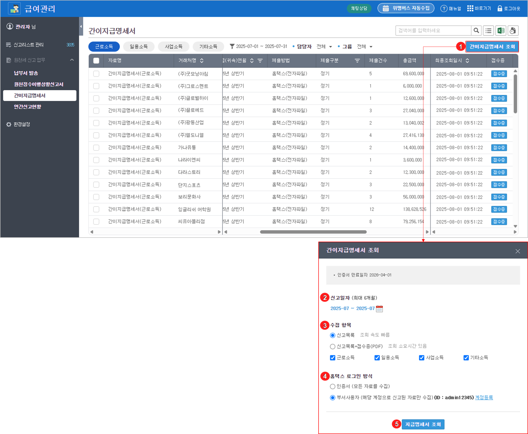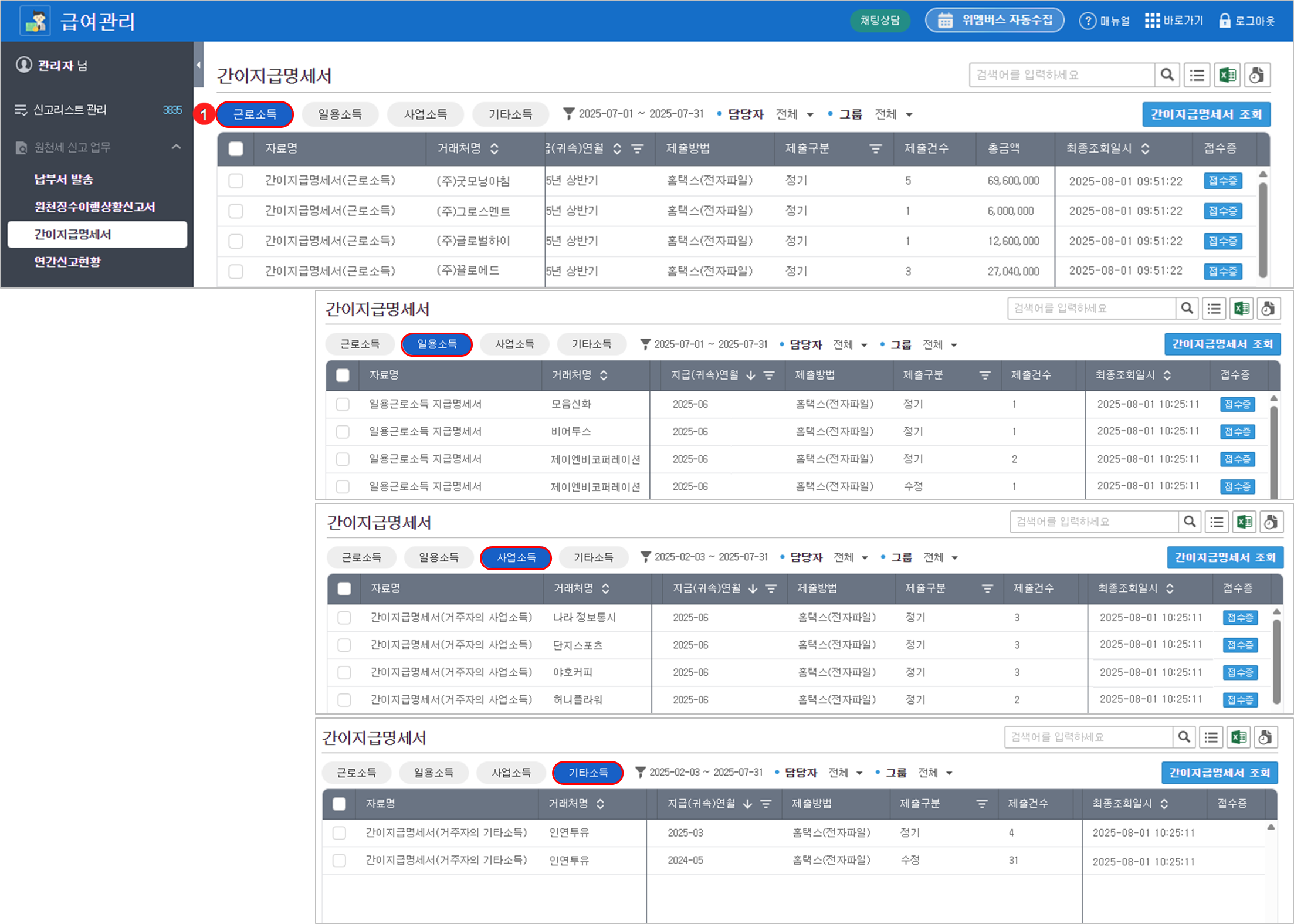 간이지급명세서 수집 대상 페이지
