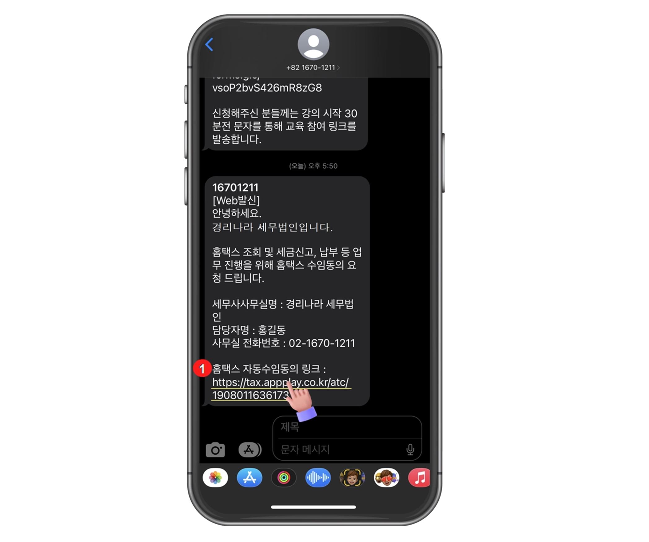 ① 링크 접속 : 수신된 문자 메시지를 확인하고 본문의 [수임동의 링크]를 클릭합니다.