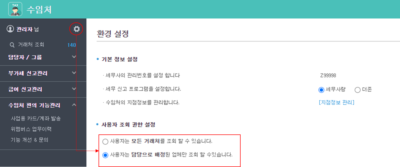 관리자 : 수임처 앱에서 모든 거래처 정보를 조회할 수 있습니다.