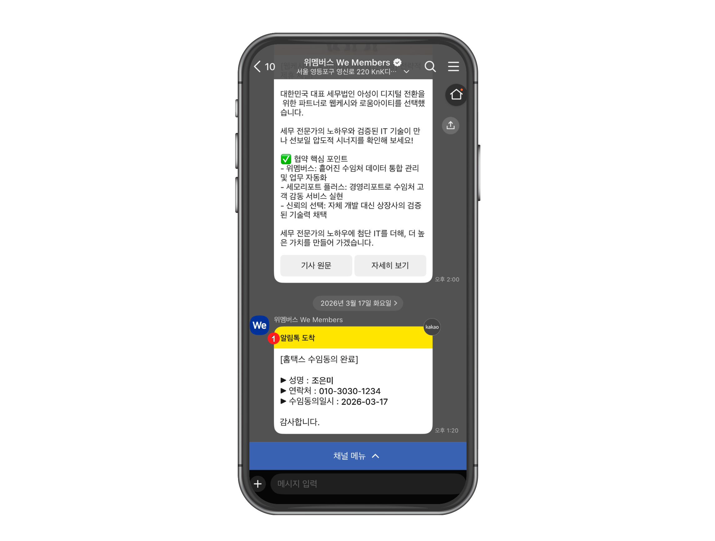 당자 휴대폰 번호로 카카오 알림톡이 자동 발송됩니다.