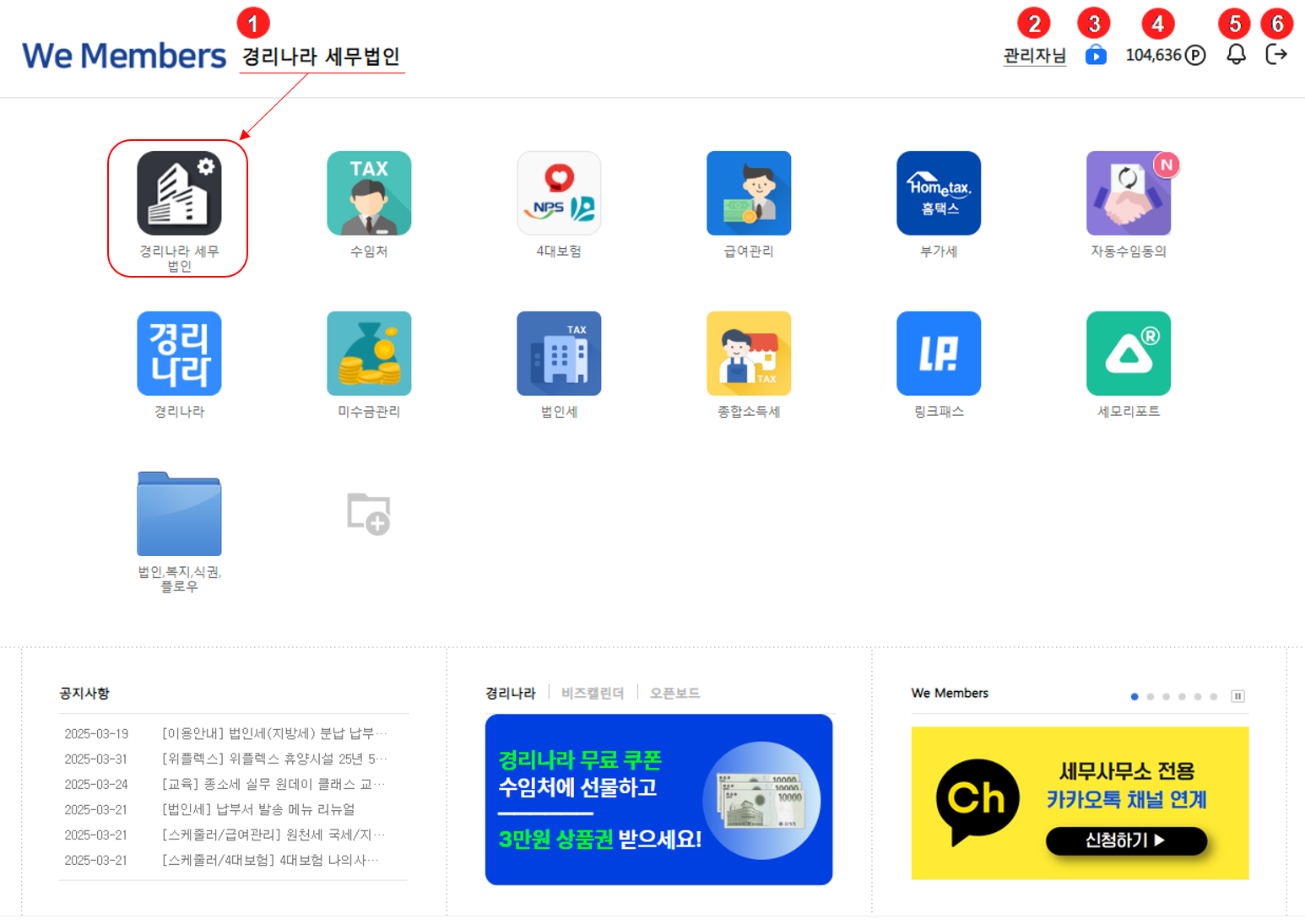 위멤버스는 세무사무소 업무에 필요한 기능을 앱 형태로 제공하여 한눈에 확인할 수 있습니다.
