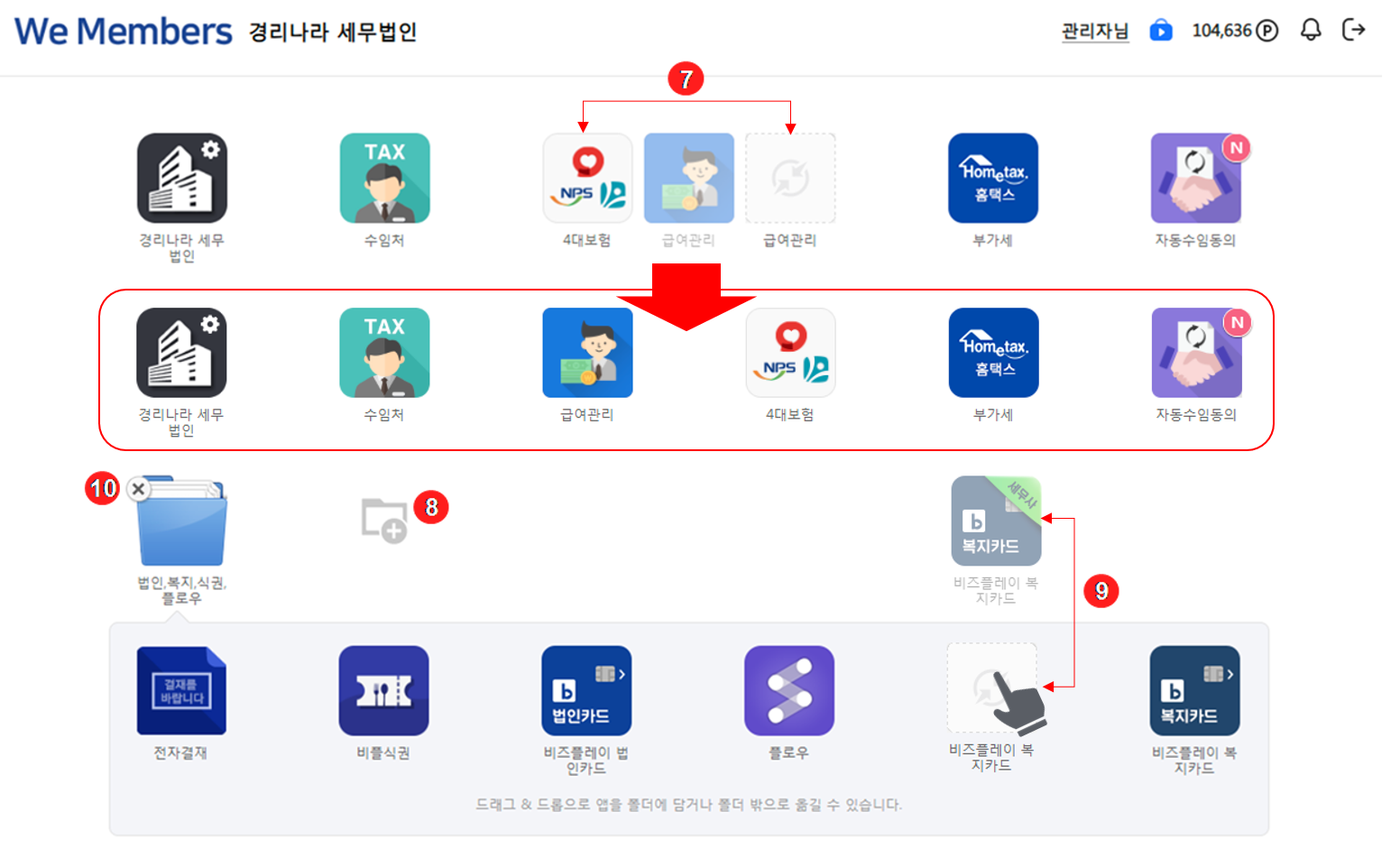 또한, 업무별로 구분된 메뉴를 통해 필요한 기능에 직관적으로 접근할 수 있습니다.