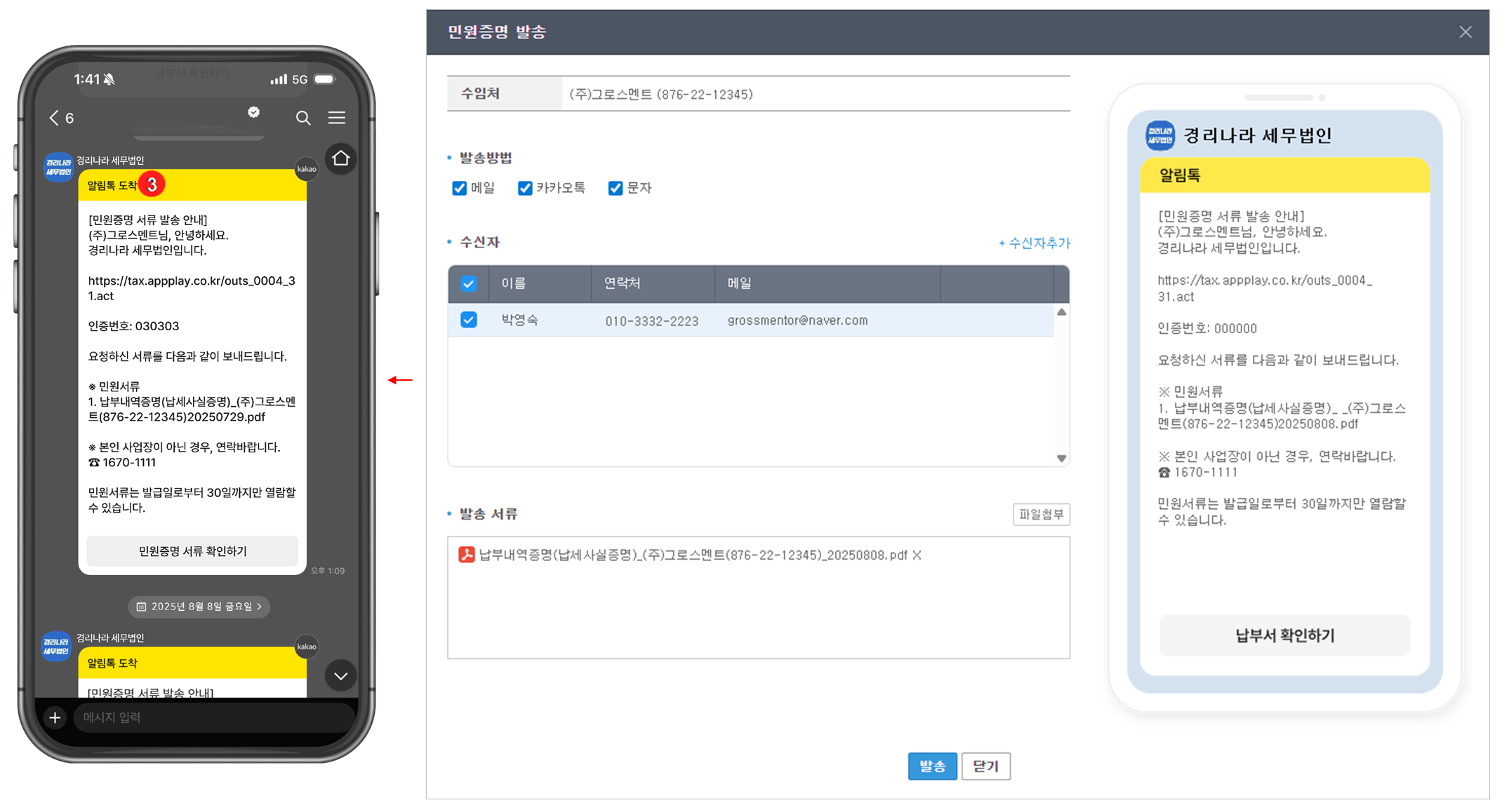 - 납부서 / 신고서 / 접수증 알림톡 발송