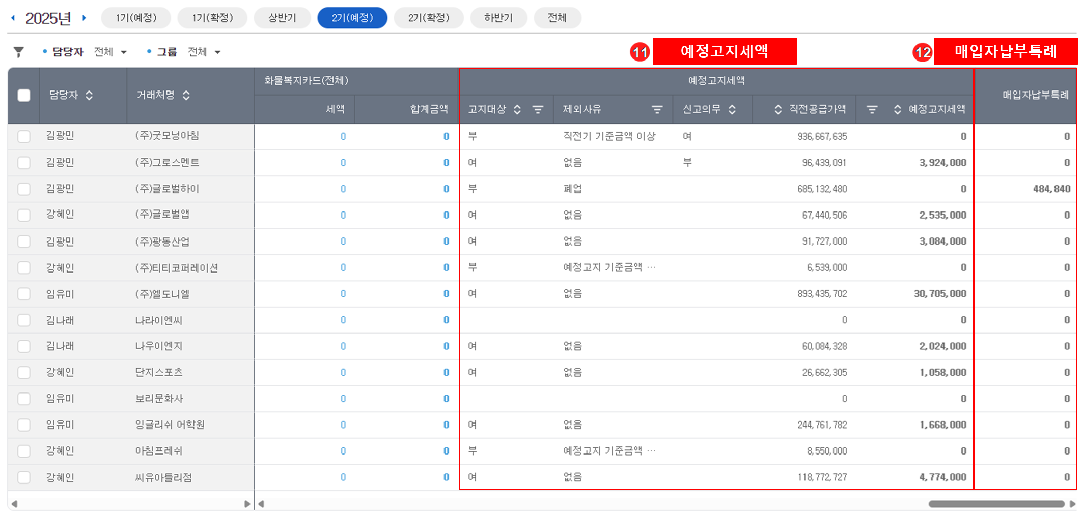 과세유형별로 선택 조회할 수 있습니다.
