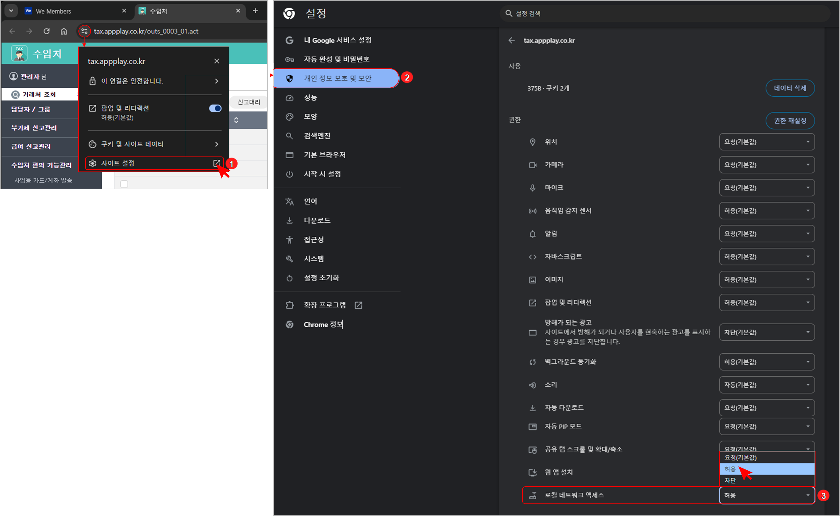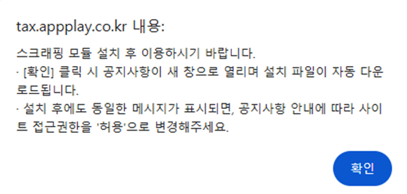 사용 중인 브라우저에 따라 아래 설정을 '허용'으로 변경해야 정상적으로 스크래핑이 작동합니다.