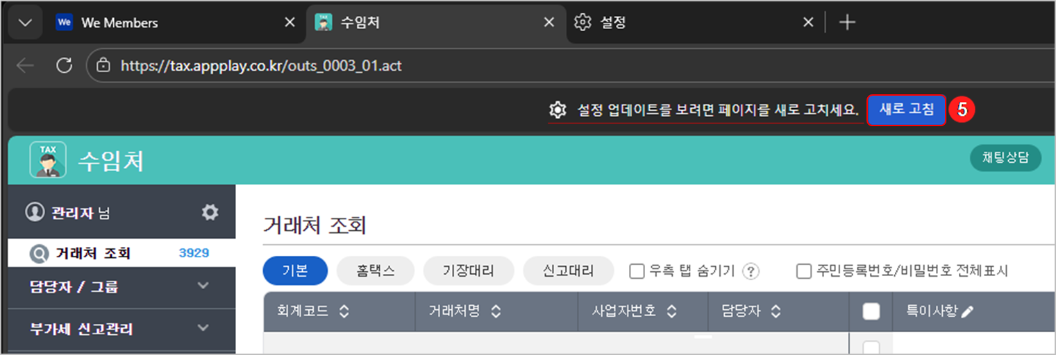 ⑤ 브라우저를 재실행 하거나 '새로고침'을 클릭 후 스크래핑 모듈이 정상적으로 작동되는지 확인하시기 바랍니다.