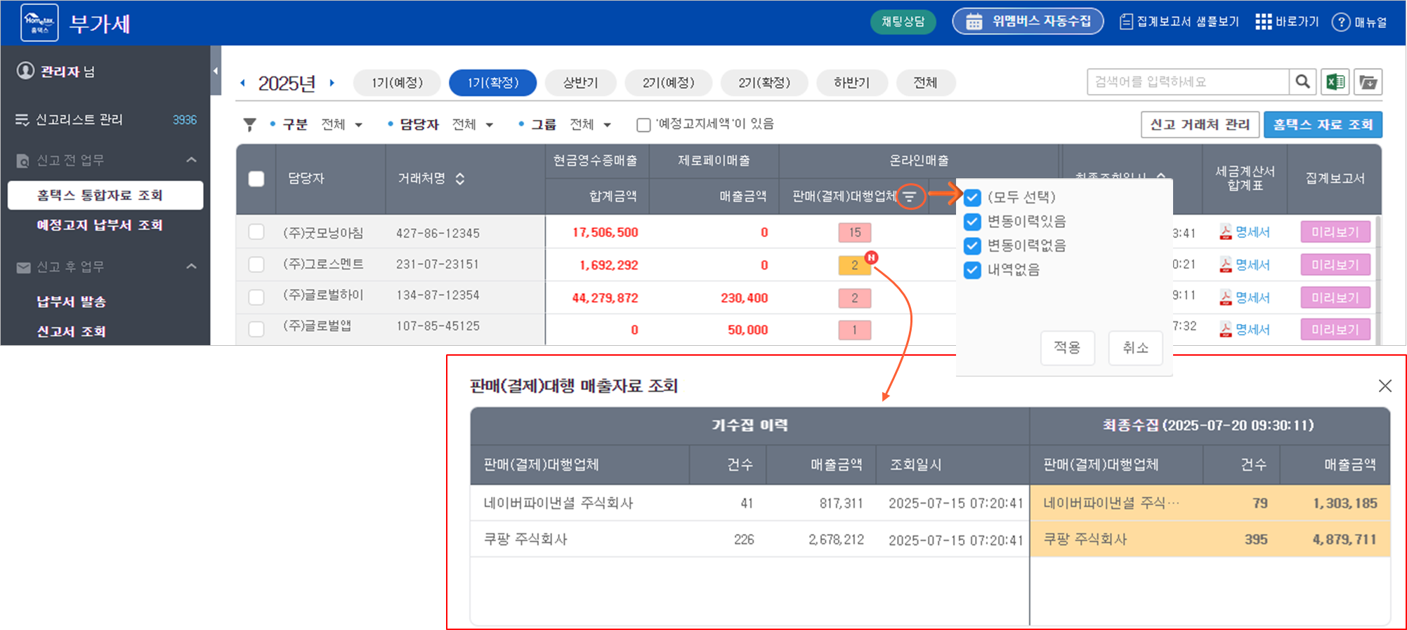 경로 : 부가세 앱 > 홈택스 통합자료 조회