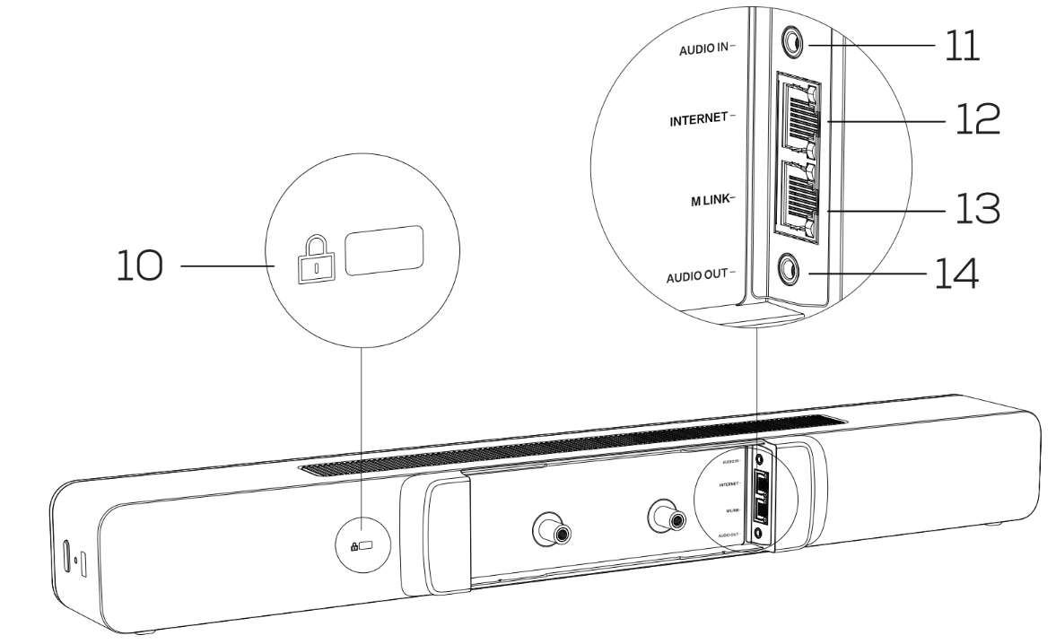 Audio In:外部オーディオデバイスとの接続に使用できます。サウンドバー内蔵マイクとの同時利用はできません。