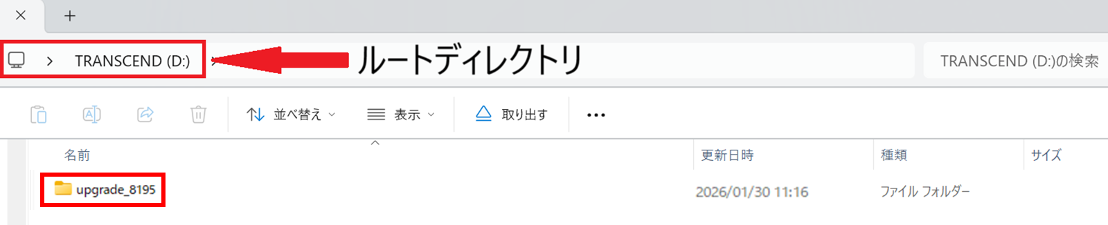 USBメモリのルートディレクトリ(最上位のフォルダー)にコピーします。
