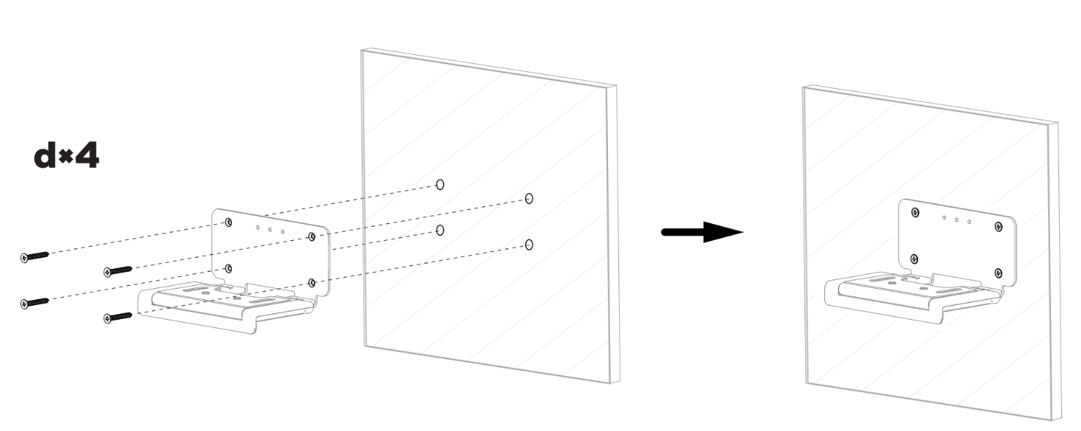 (3)ブラケットを壁から90度の角度に開き、4本の壁ネジ(d)でアンカーに固定してください。