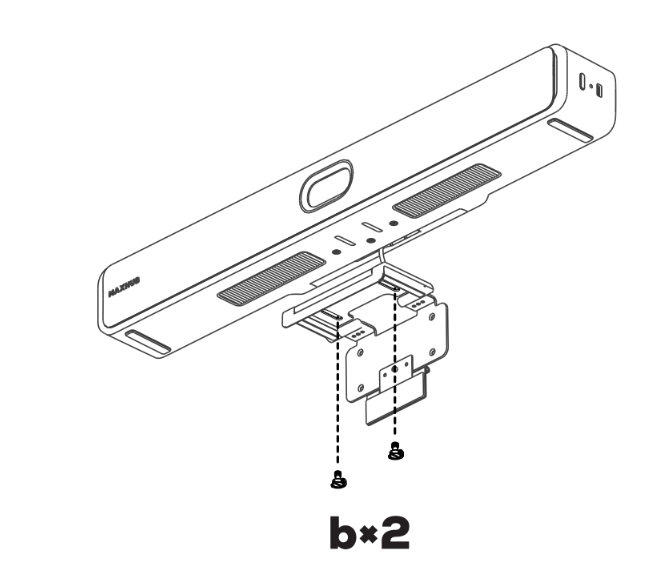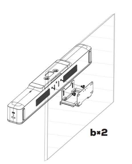 (4)組み立てたブラケットとXBar V50を2本の蝶ネジ(b)でしっかり固定してください。