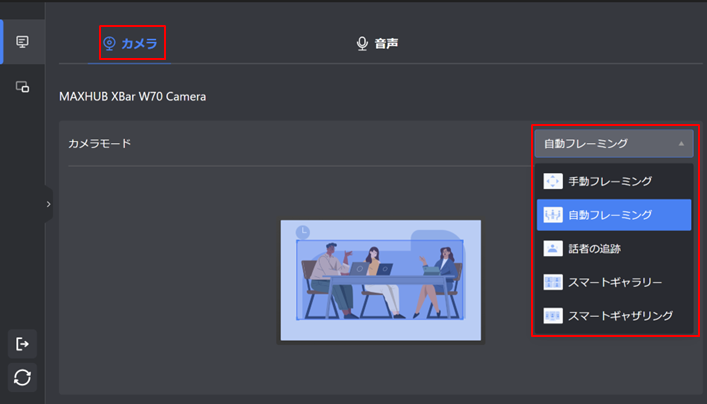 発言中の話者の顔を認識し、自動的にフォーカスします。