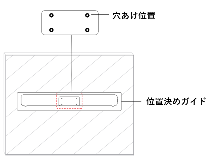 (1)取り付け位置に位置決めガイドを置き、マーキングしてから4か所に穴を開けてください。