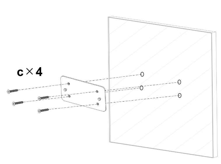 (3)壁アンカーに、壁掛け用ネジ(c)4本で壁掛けパネルを固定してください。