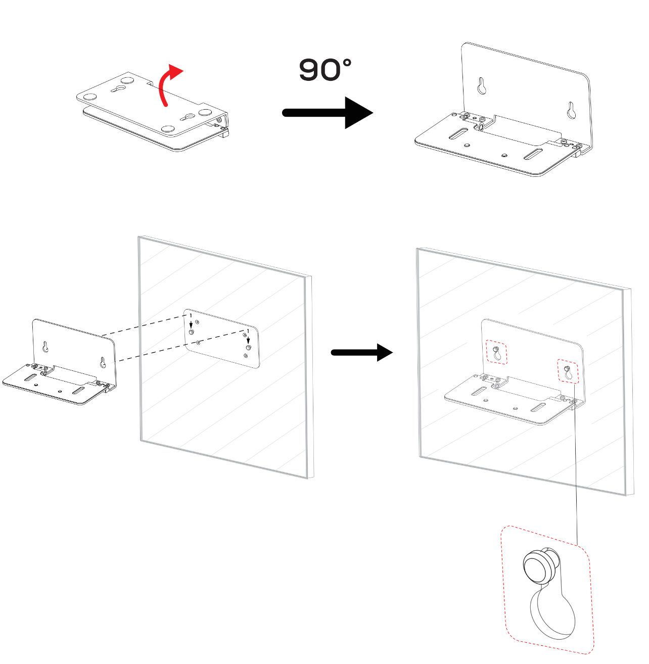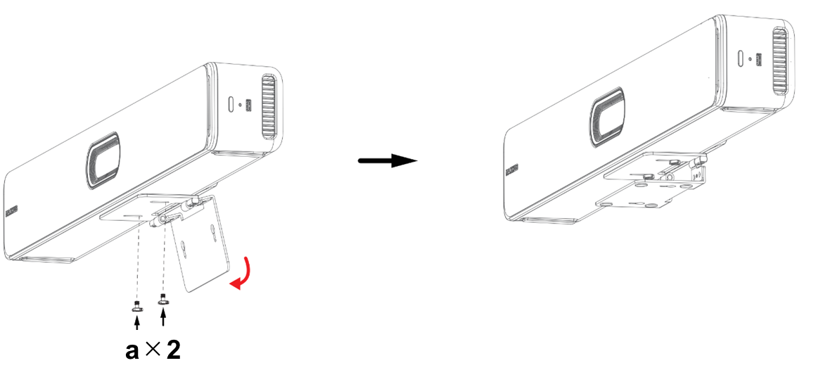 (4)壁掛けブラケットを開き、下図のように壁掛けパネルに引っ掛けてください。しっかり固定されていることを確認してください。