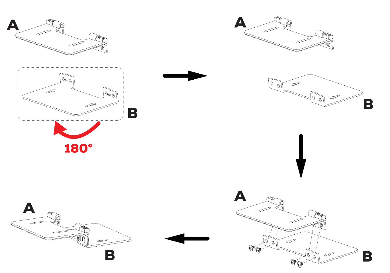 (1)接合部の4本のネジを外して、ブラケットをAとBの2つの部品に分けてください。