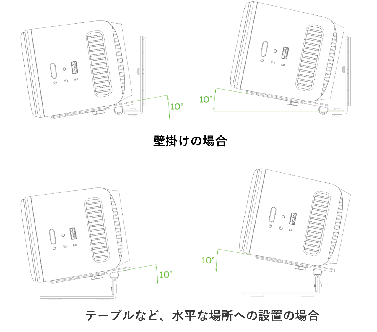 カメラの映像に合わせて、ブラケットの角度を上下それぞれ10度以内で調整してください。